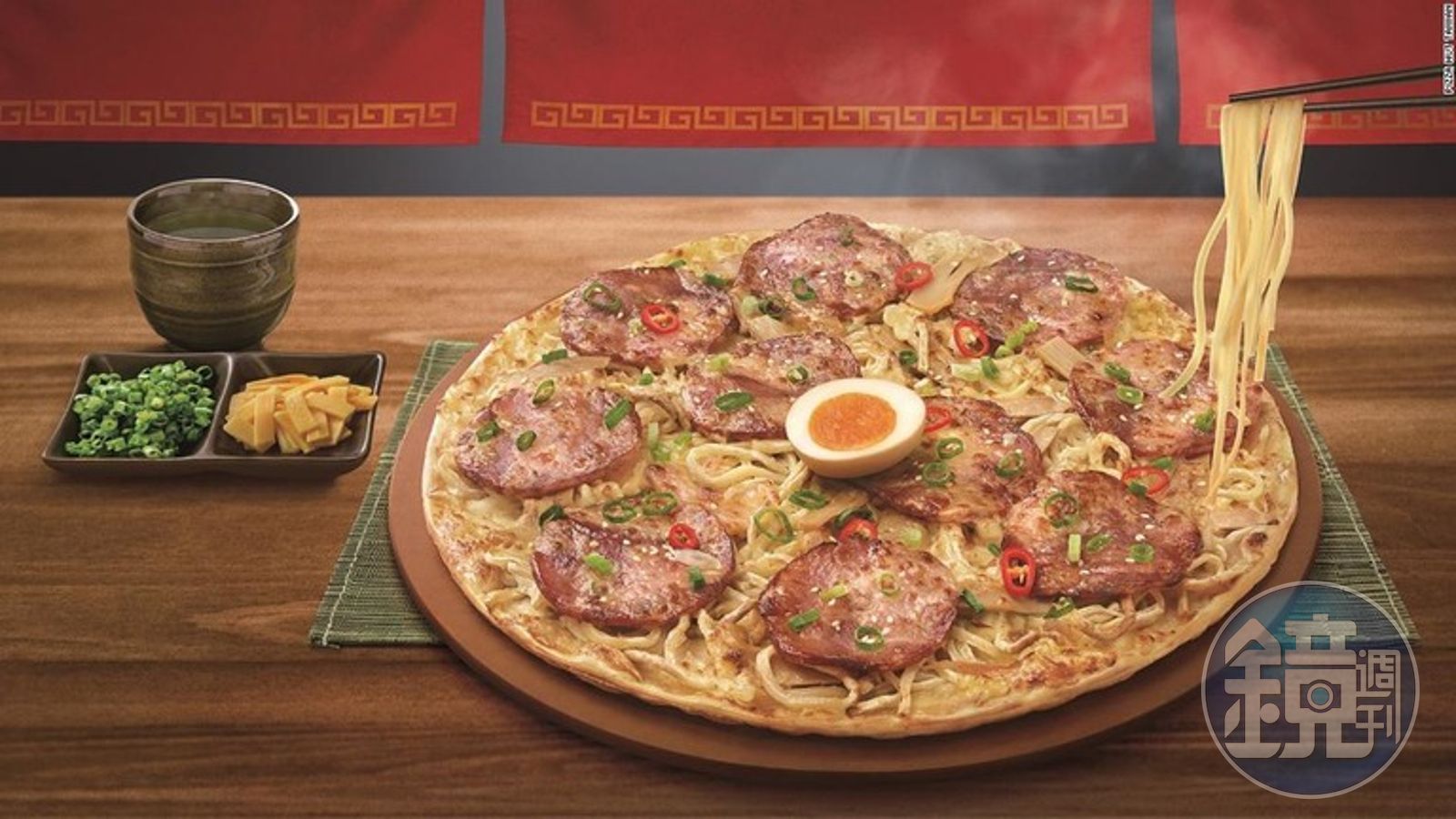 繼之前陸續推出榴槤披薩、臭豆腐披薩後,台灣必勝客這次把腦筋動到日本的經典美食拉麵上,宣佈將和蟬聯2屆TRY大賞冠軍拉麵店《麵屋武藏》聯名,推出「一口入魂拉麵」披薩,消息一出也被兩國網友熱議,新聞還攻佔日本CNN版面。