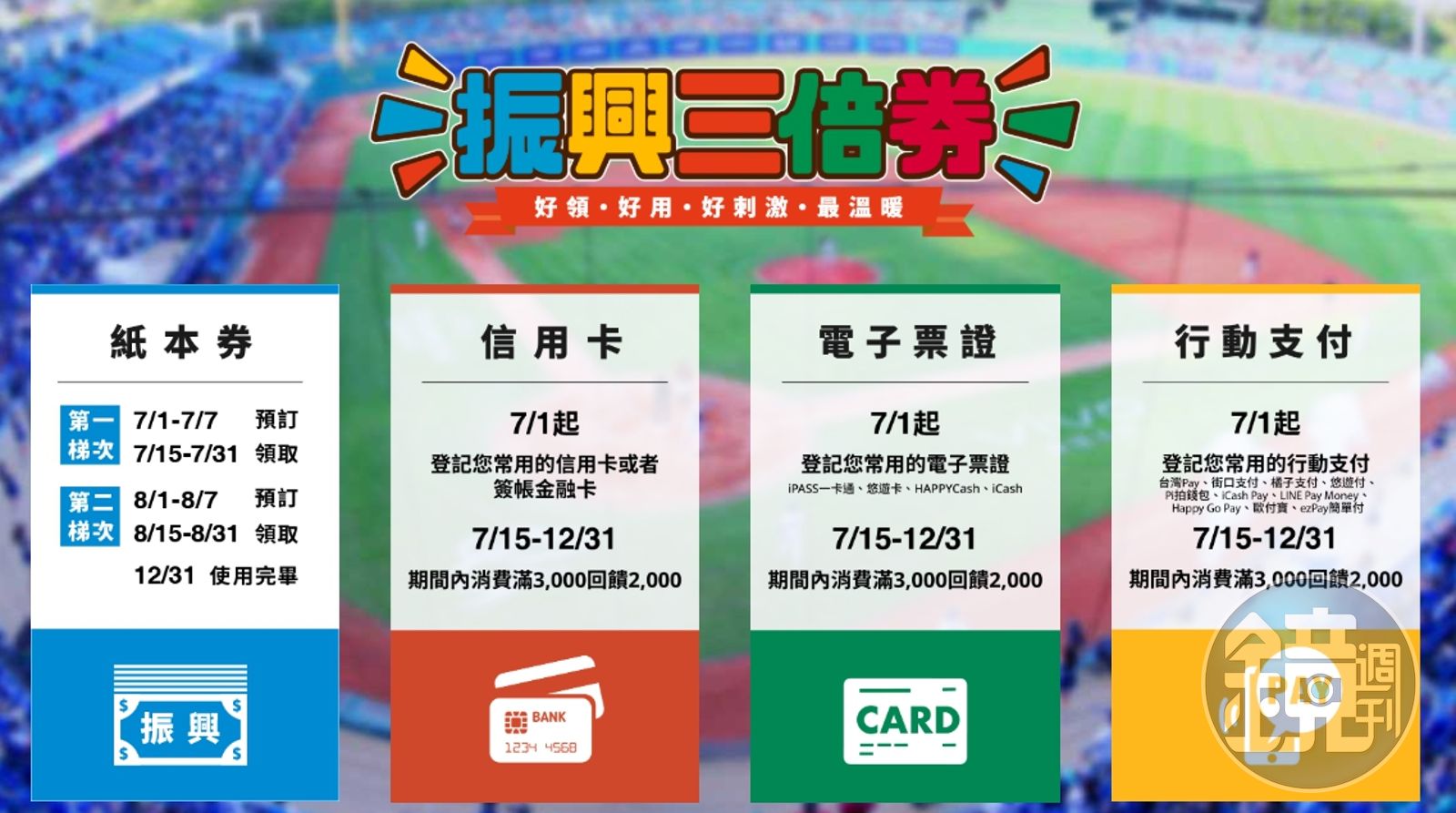 若是使用信用卡、電子票證和行動支付,則是即日起登記,7月15日至12月31日間都可使用。