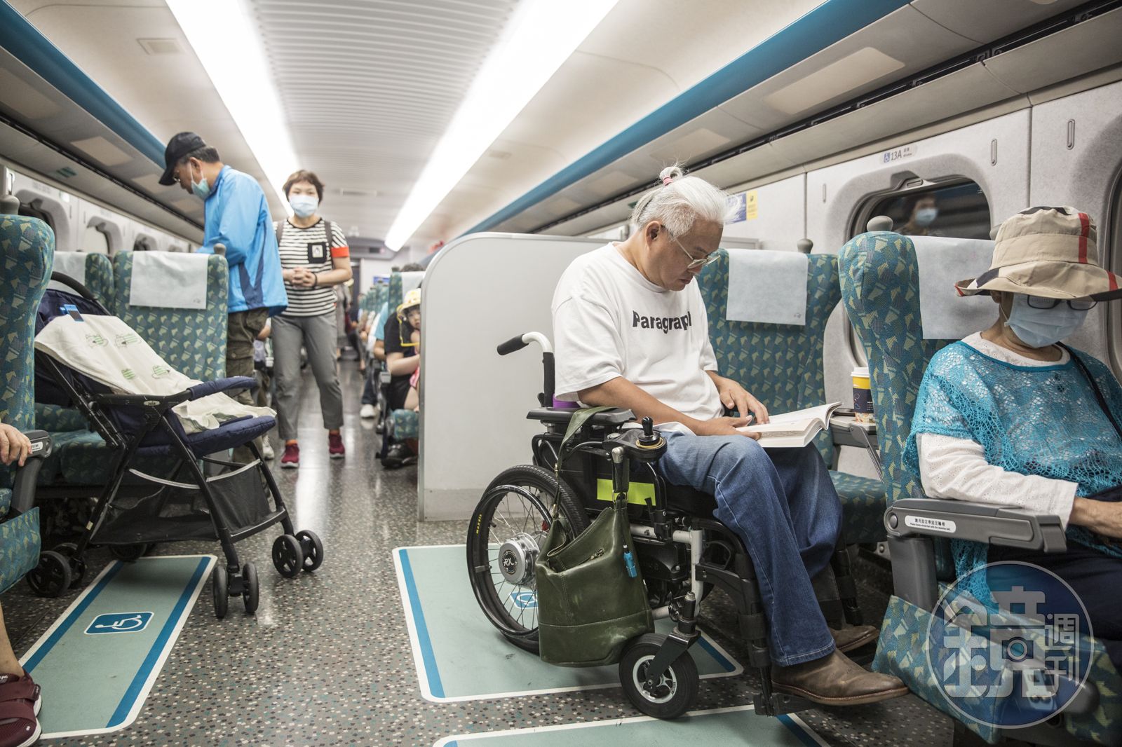 採訪這天,與范可欽約在高鐵第7車廂碰面,因為每班高鐵車次,在那設計有4席無障礙座位,他南來北往自然選擇那節車廂,當天他從台中北上,採訪小組在月台等他,果然,列車進站後第7車廂門一開,就看見范可欽在走道上看書。