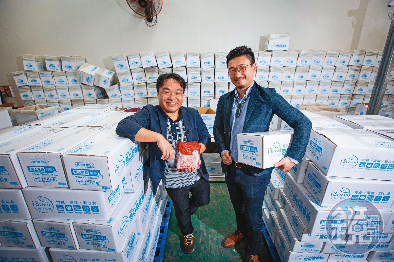 下午1點半,十多台Lalamove快送的摩托車大陣仗停在五股工業區內「愛上新鮮」的倉儲中心門口,快送員趕在雙北市客戶下單3小時內送貨到家。廠內光撿貨加包裝出貨的人員將近30位,董事長吳榮和幫手推了一下進貨的拖板車,不好意思地說:「我們1天出2、3個貨櫃的量,工廠容量有點不夠,但二廠7月中完工,2個廠加起來1,000坪。」