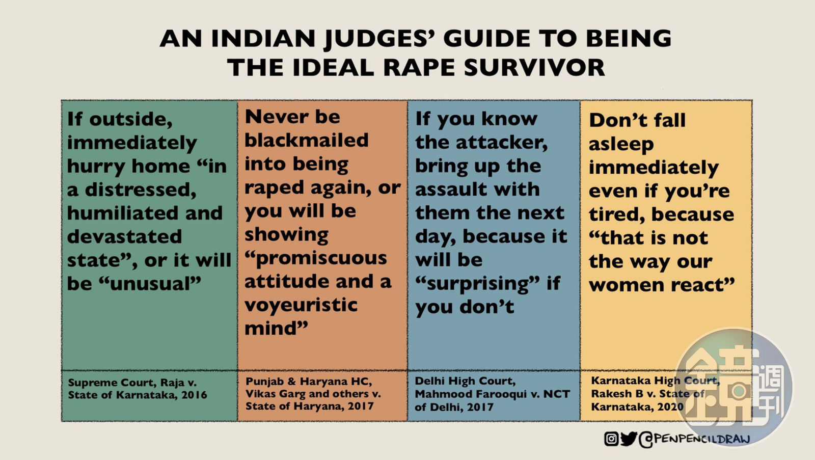 據《BBC》報導,印度卡納塔克邦高等法院法官迪希特(Krishna S Dixit)日前裁定一名性侵案被告獲得保釋,法官解釋保釋理由時指出,因為受害者遭性侵後累得睡著了,這不是印度女人會有的反應,我們的女性被凌辱後不會有這種反應。