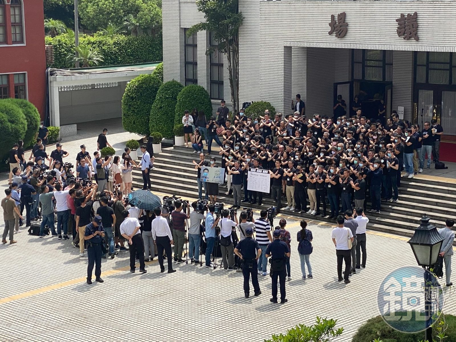 陳柏惟雖然在臉書上表示,尊重國民黨聲明,願將「黑衣人」改成「大批知名立委助理」,但國民黨團無法接受,今日週一上班日一大早,召集來128名國民黨立院助理,在立法院門口身穿黑衣表示抗議,還秀出自己的「立法委員助理證」,證明自己身分,眾人簽署「拒抹黑、反霸凌」連署書,要求2人公開道歉,甚至怒嗆2人為「臭俗辣」。