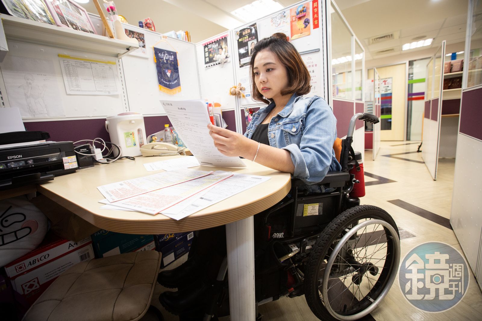 因為是重度身障者,同時也是保險業務員的身分,當她聊起身障者投保時會遭遇到的問題,格外寫實,「我14歲那年,爸爸動念要幫全家人投保,當時雖然我已經是癱瘓的狀態,但很慶幸我沒有被排除在外。」小時候的事林欣蓓記得不多,可是她印象最深刻的是,只有她被要求驗尿體檢,而那對行動不便的她而言,是一件很不方便的事。