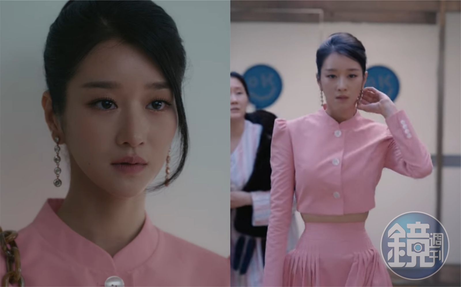 徐睿知在《雖然是精神病但沒關係》穿粉色套裝登場,超細小蠻腰引發討論。(翻攝Netflix畫面)發布時間:2020.07.06 13:54 臺北時間