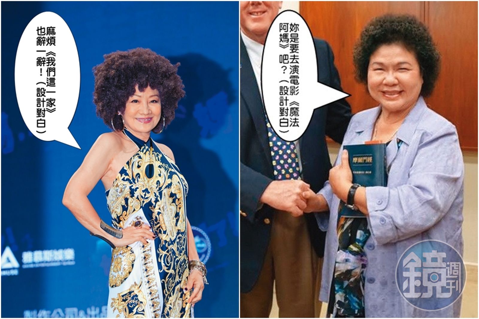 比莉主演影集《媽,別鬧了!》,頂著花媽的髮型亮相;陳菊與動畫《我們這一家》裡的花媽一個樣,連日媒《讀賣新聞》也認證。(右圖翻攝自陳菊臉書)發布時間:2020.07.11 05:59 臺北時間