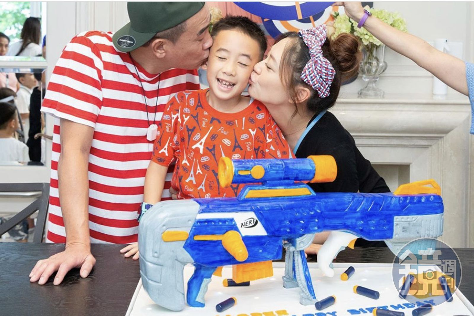 應采兒與陳小春特別幫兒子生日布置生存遊戲主題,讓Jasper相當開心。(翻攝自應采兒IG)應采兒和陳小春每年在Jasper生日,總會精心布置,配合兒子的喜好配置主題派對。今年主題是「生存遊戲」,看到現場不僅有輪胎當作掩蔽物,陳小春與Jasper一人一把玩具槍宛如深入其境,就連蛋糕都是特製的玩具槍蛋糕,Jasper顯得非常滿意父母為他所準備的生日禮物。