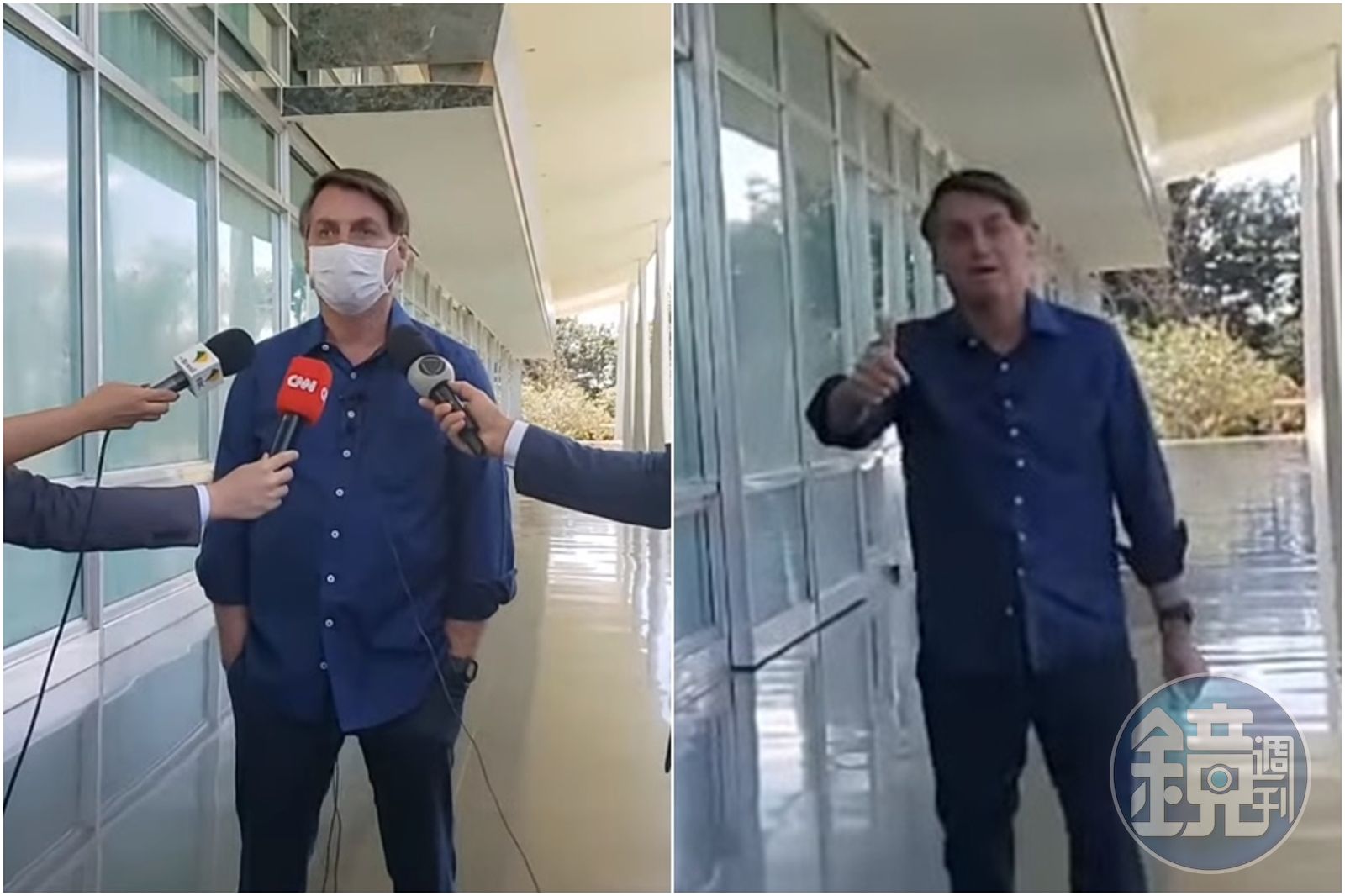 武漢肺炎(亦稱新冠肺炎,COVID-19)重災區巴西至今逾172萬人確診,超過6.8萬人死亡,總統波索納洛(Jair Bolsonaro)7日在記者會上宣布自己確診,不過他竟不顧現場記者們的安危,突然脫下口罩比讚說「我很好!」讓巴西記者協會不滿決定提告。