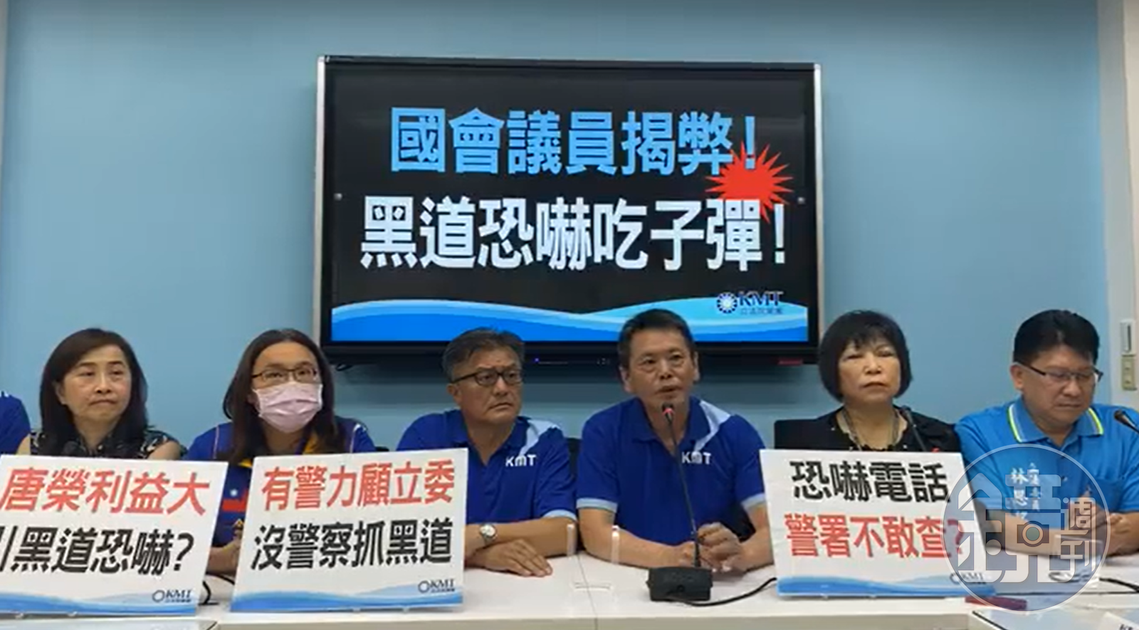 今(10)日國民黨黨團召開「國會議員揭弊,黑道恐嚇吃子彈」記者會,立委林為洲、孔文吉等人痛批,揭露蘇嘉全外甥張仲傑的弊案,並向檢調告發後,孔文吉立院辦公室助理和孔文吉本人都接到「未顯示號碼」的電話,一名男子用台語稱:「你老闆是想要吃土豆還是芭樂?」嚇得助理趕緊向孔報告。
