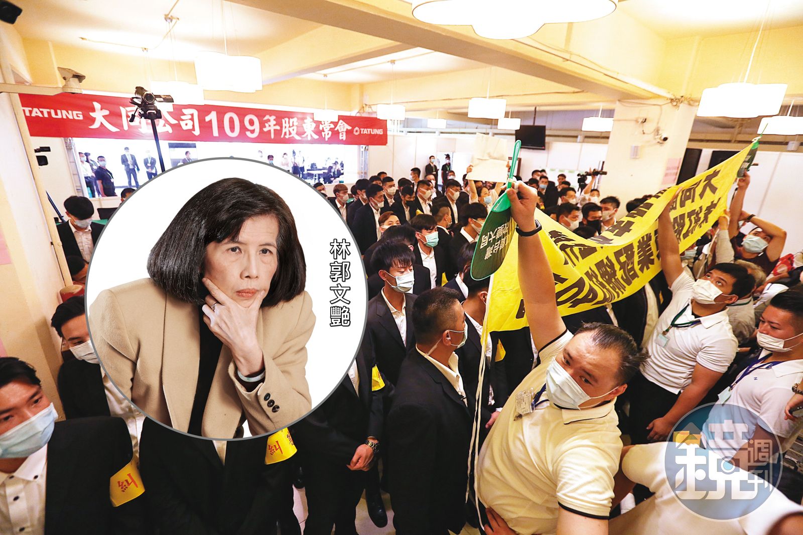 這次林郭文艷為保大同,在今年股東會上變本加厲、狂踩法規紅線的做法已惹惱主管機關,「林郭文艷過去在商場上兵來將擋,如今恐怕是遇上生平最大危機。」市場人士搖頭說。