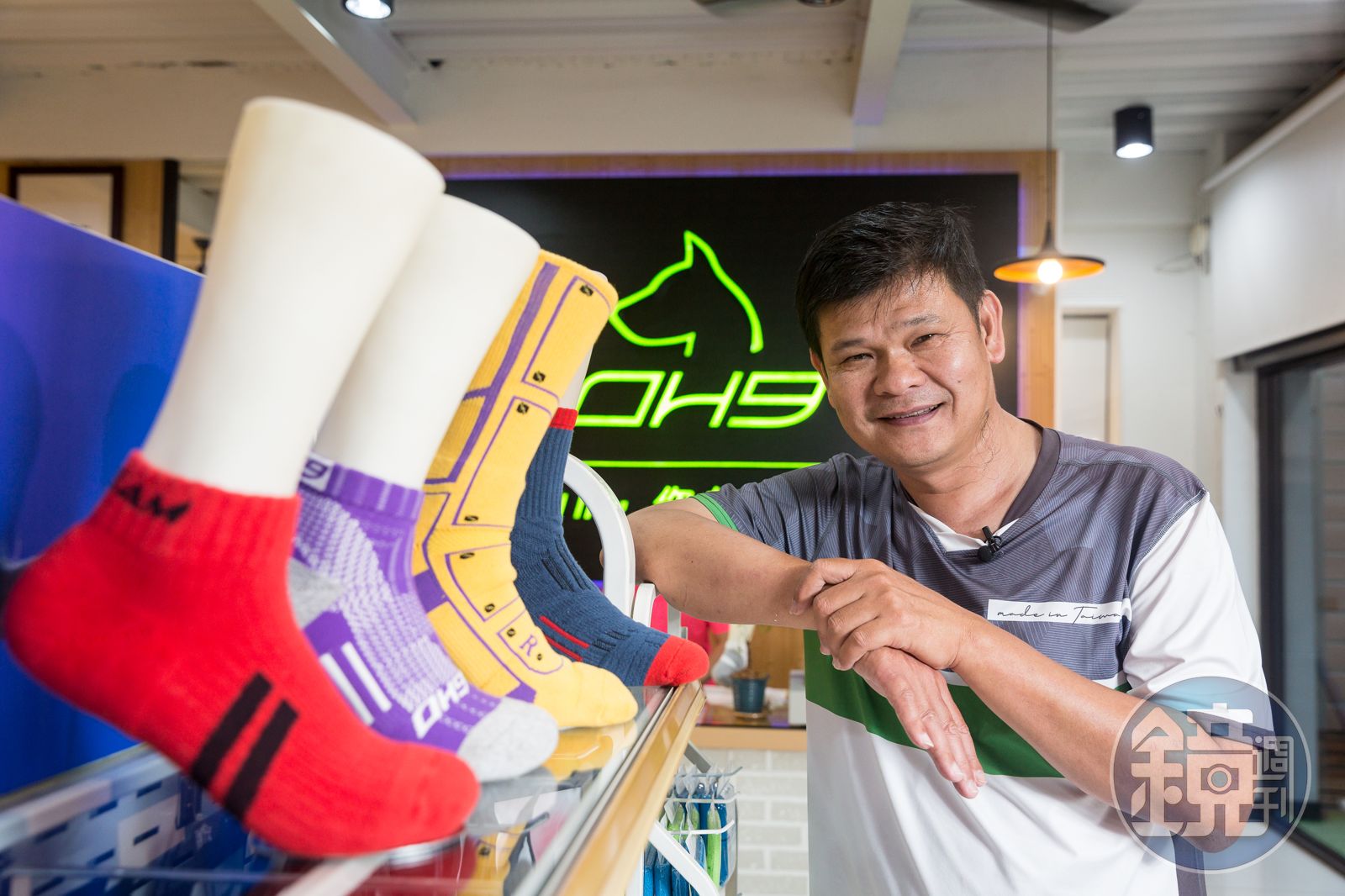 彰化社頭是織襪的故鄉,李東林也是其中一分子,創立的OH9首創依運動項目分類襪子,例如慢跑襪、排球襪、籃球襪、登山襪等,甚至連逛街也有專業用襪。今年肺炎疫情爆發後,門市生意下降2到3成,「一些大專乙組聯賽、高中聯賽和路跑都取消,所以衝擊到訂單。」但李東林不氣餒。