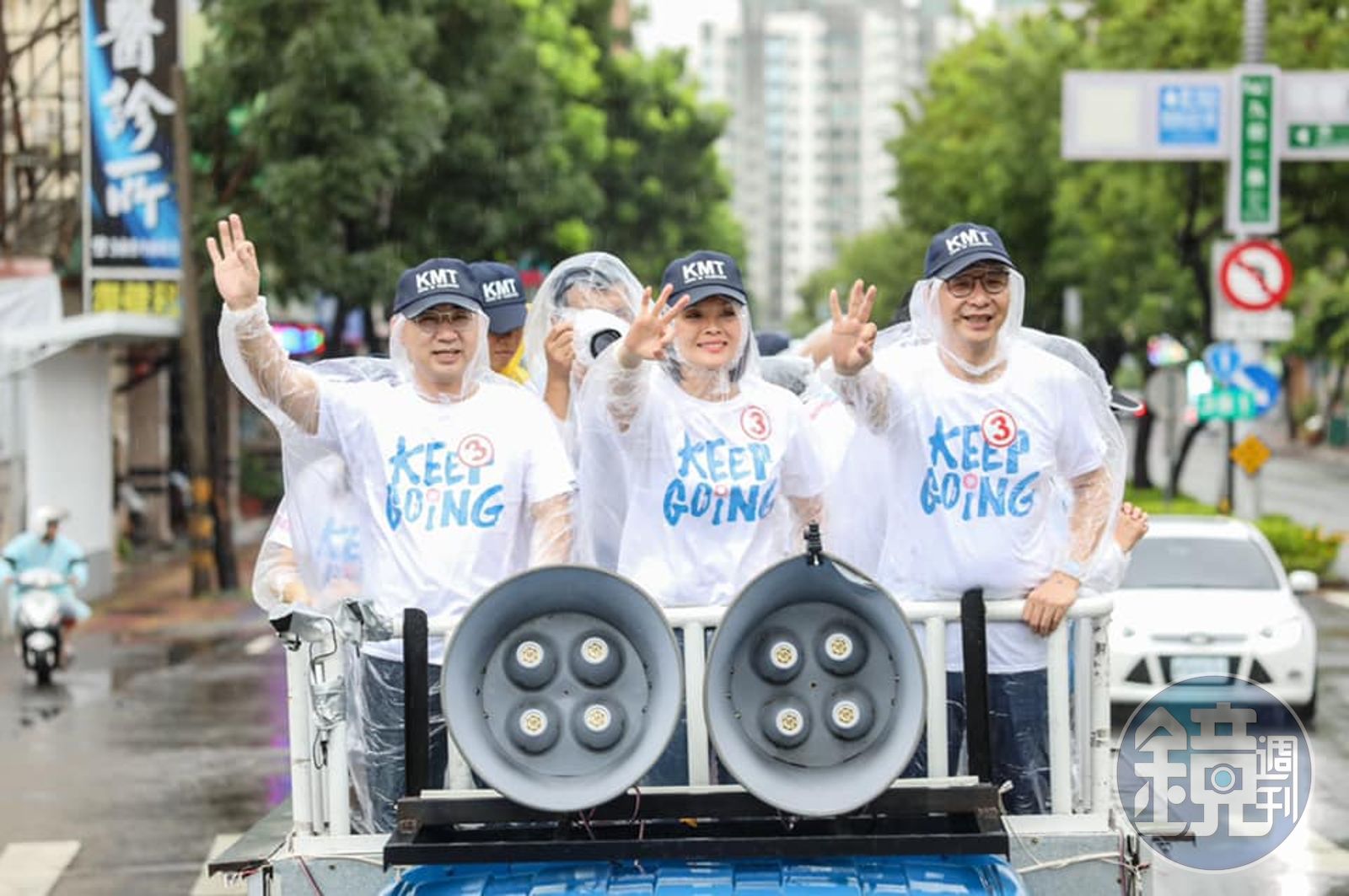 江啟臣及朱立倫冒雨陪李眉蓁車隊掃街,車上麥克風手卻喊「選人不選黨,支持投3號李眉蓁」,讓陳其邁競總發言人林智鴻狠酸她是「羞辱黨主席」。