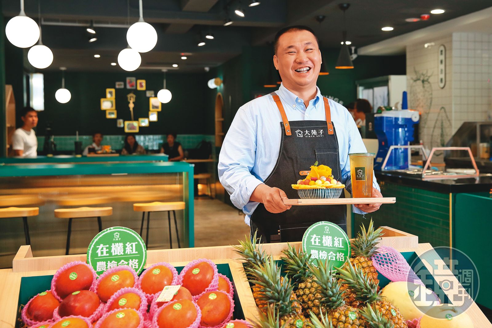 習慣講台語,開口閉口都是水果的邱瑞堂,與其說是賣手搖茶飲,更像在賣水果,事實上,他真的有在賣水果,「我們的裁切水果供給台積電4個廠,每天出1千多盒,也供給幾家五星級飯店…」去年大苑子合作的果農有1,600位,水果用量超過5千公噸。