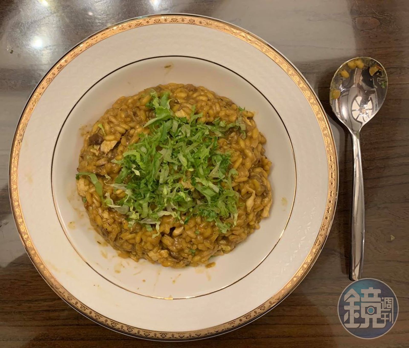只不過,義大利燉飯的米不用浸泡,在翻炒過程彼此碰撞,澱粉釋出,會讓湯汁濃稠,吸附在米粒上。再者,正宗義大利燉飯講究每粒米要有米心,講白話就是7、8分熟,要看到米心的一點白,如是而已。所以,會做台灣油飯的,完全不用害怕嘗試義大利燉飯,基本功幾乎一樣。