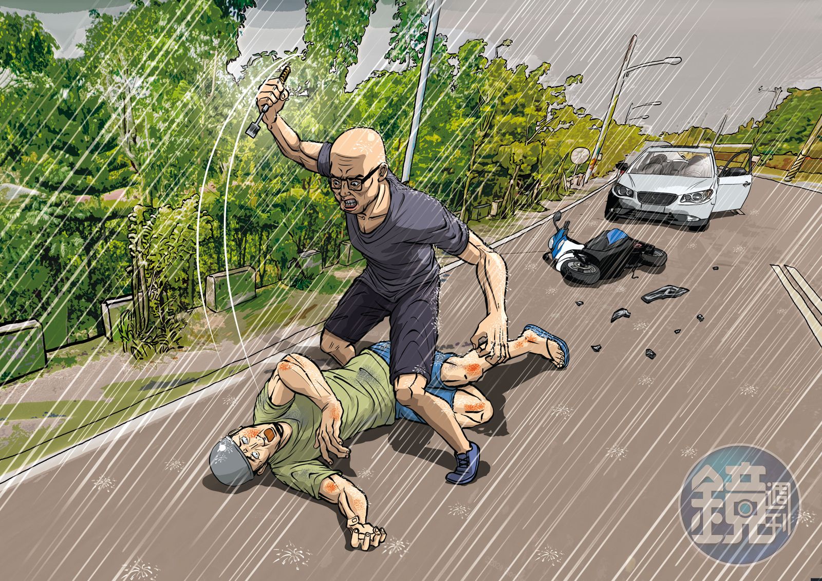 當年偵辦此案、時任台南市警局善化分局偵查隊長林逸新,向本刊還原整起案情,案發當天,涂女開車準備去接女兒,不料,林男突然騎機車出現,還重拍她的車窗,要她下車談判,涂拒絕後,隨即駕車離去,但林不放棄,騎機車追趕,涂於是打電話給黃永茂求助,黃則指示涂往「南140道」前進。
