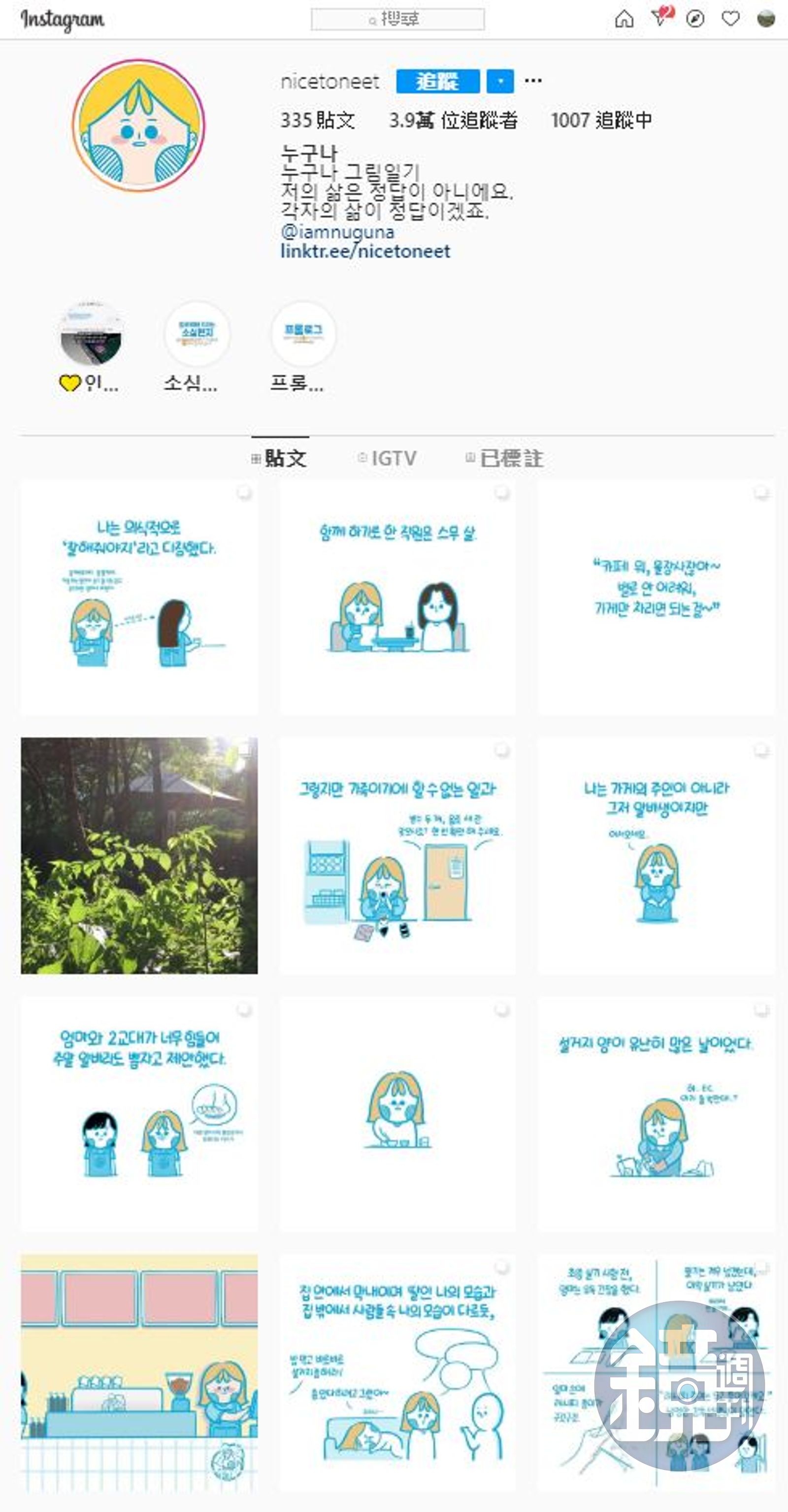 如今,她已有近4萬追蹤者,還集結出版了兩本網路漫畫;一旦她存夠了錢,便在2019年搬出父母的房子,在首爾市一條幽靜街道租了間頂樓小套房。