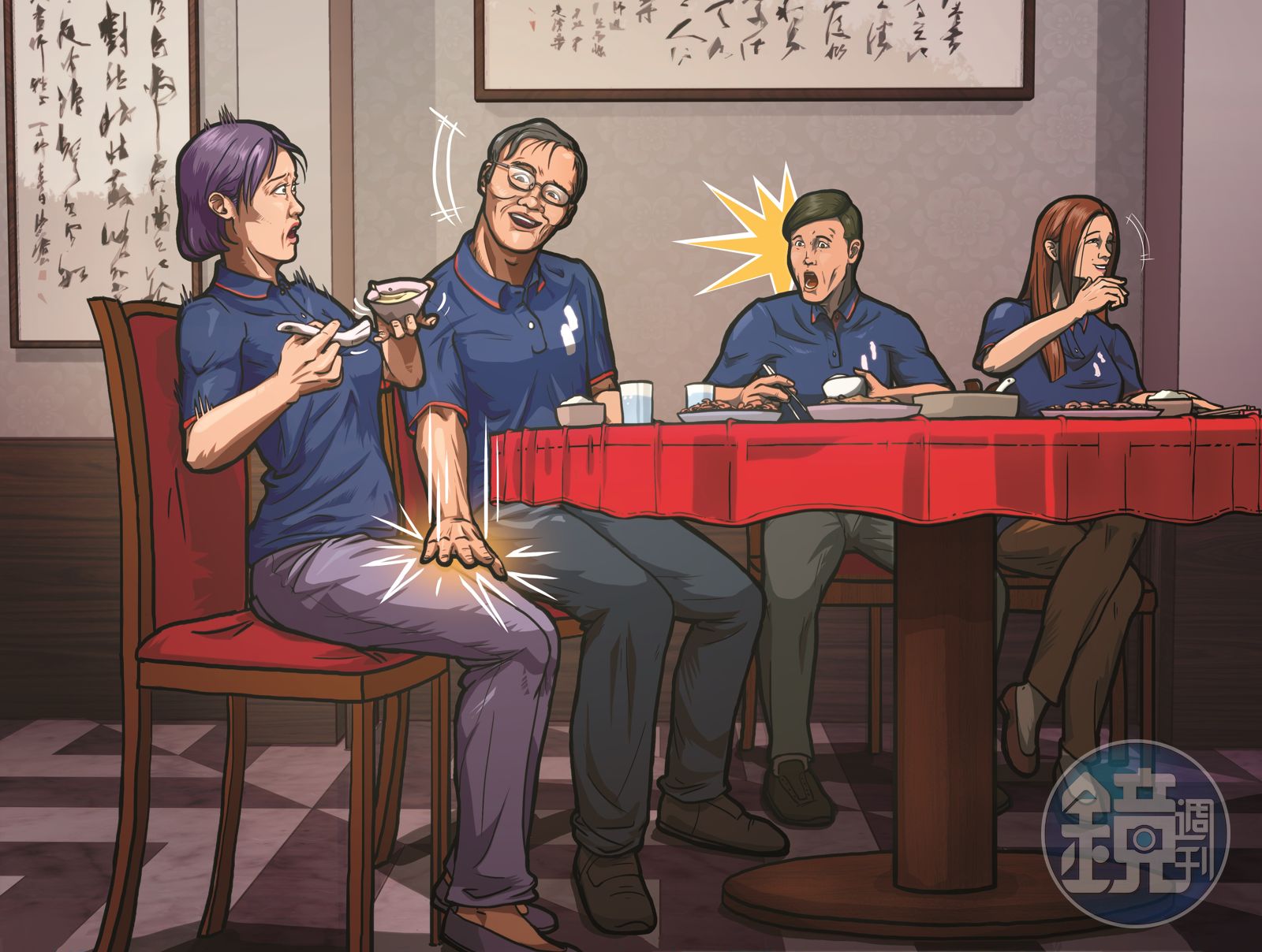 但這已不是C老師第一次遭到性騷擾,最嚴重的一次發生在2015年6月4日,那天是教師會舉辦研討會後,眾人前往餐敘。原是一場開心的聚會,但C老師卻被安排坐在鄭建信旁,飯吃到一半,「他突然就拍了我的大腿…我不敢當面跟他翻臉,後來同桌有別人看到,馬上幫我換位子。」