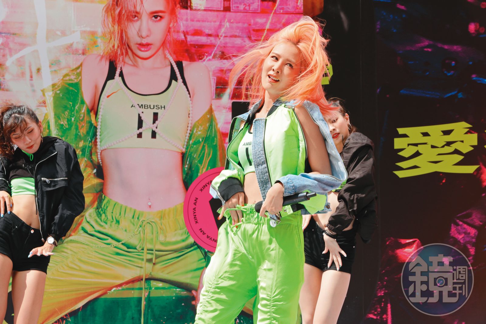 為響應政府「超前部署」,安心亞俯身向前,讓「長輩」奶奶超「前」部署。這位宅男女神推出新專輯《愛得起》,在預購記者會上載歌載舞,唱跳主打歌〈來追我男友吧〉,竟然跳出一頭半屏山,「眼肉芽」的女神地位危險了!相信高喊單身5年的安心亞,必可靠此招到我14億同胞的桃花。