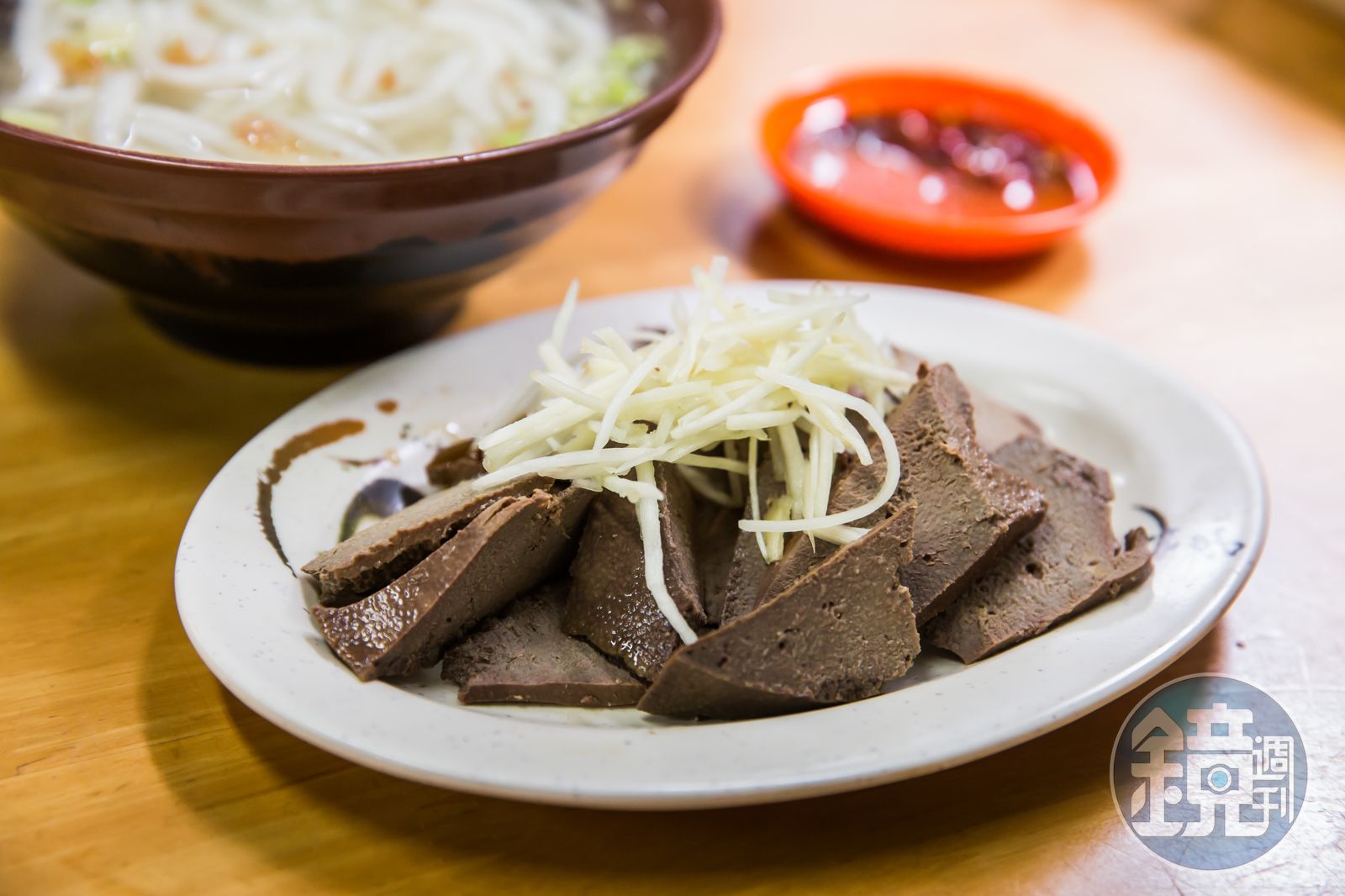化身超級特搜小組組長的攝影循線找到阿嵐小吃店,小小攤位上果然有3、4位員工,鄭欽天大讚特製豬肝:「咬起來真的超香的。」滷過的豬肝滋味香濃,少了內臟腥味。