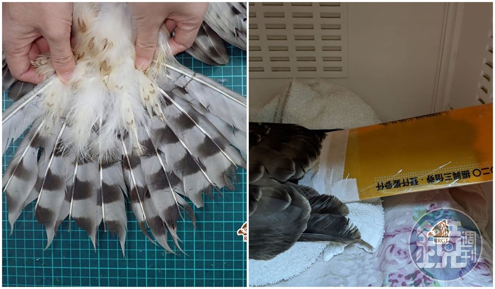 台灣猛禽研究會臉書昨晚發文募集三倍券塑膠套,表示救傷站傷鳥使用的尾羽套,通常是將用不到的L夾剪裁黏貼成適當大小,再以特殊膠帶藉上下尾覆羽將尾羽套牢牢固定在尾部,雖然構造簡單,但能有效保護猛禽的長羽毛不在狹窄的籠舍中折損。