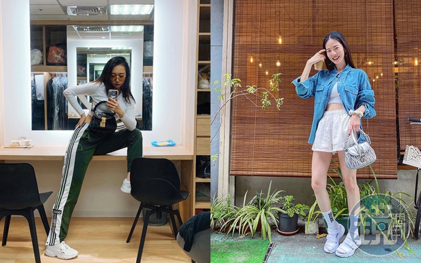 同樣穿著白色短版露出腰身上衣的吳卓源,以直筒墨綠色運動長褲展現休閒風格,為了配合下半身色調,她選用黑色可芙包款強化帥氣風格,加上她酷酷的表情與茶色墨鏡,就是一個帥啊!