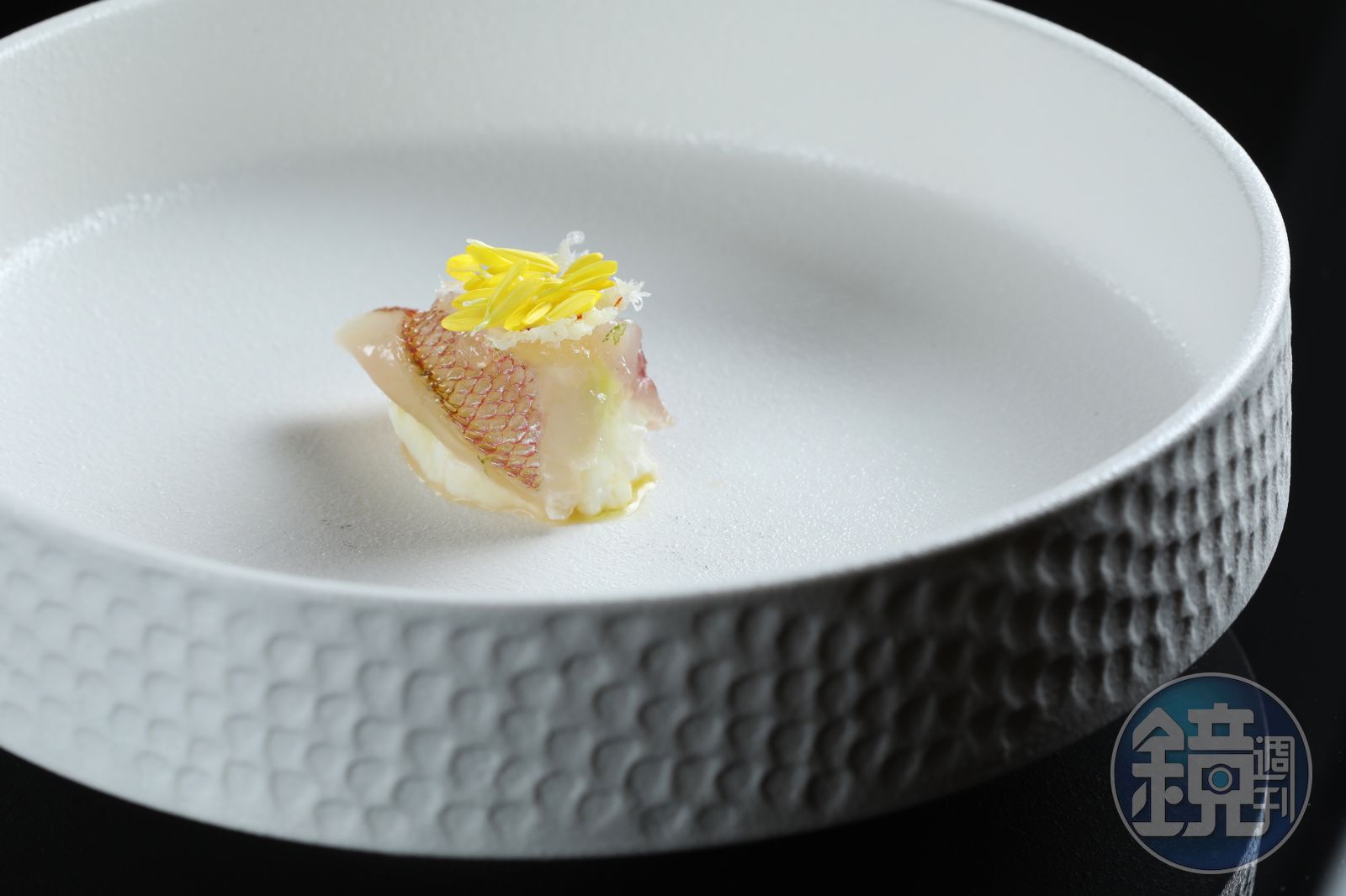 開胃菜他用了宜蘭的赤嘴蛤,搭配土佐醋凍和優格蛋黃,酸香鮮甜;紅喉則以龍眼木燻上香氣,再鋪上韭菜,靈感來自他在熱炒店吃到的「蒼蠅頭」,帶有中式鑊氣的風味,讓人差點大喊好下飯!