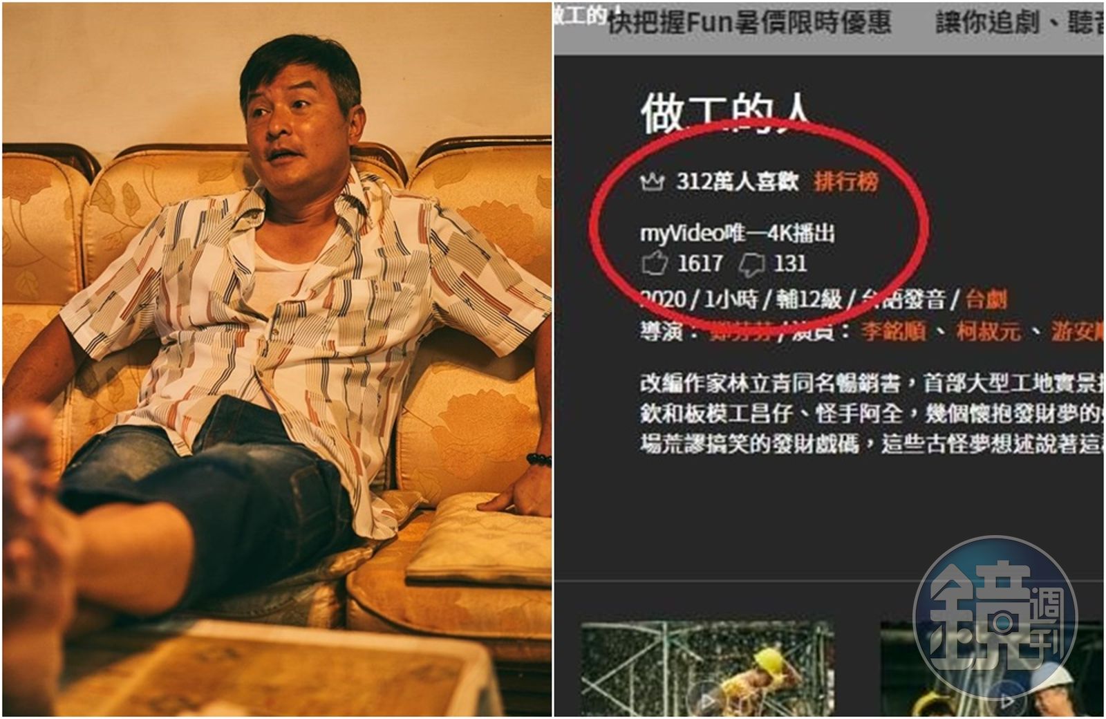 目前,在myVideo顯示最受歡迎的台、陸、韓劇,依續由《做工的人》《知否知否應是綠肥紅瘦》《浪漫醫生金師傅2》拔得頭籌,其中《做工的人》五月播出以來,累積312萬人觀看表示喜歡,獲得1613人按讚,成績最好;其次是陸劇《知否知否應是綠肥紅瘦》累積309萬人喜歡、92人按讚,以及韓劇《浪漫醫生金師傅2》306萬人喜歡、420人按讚。