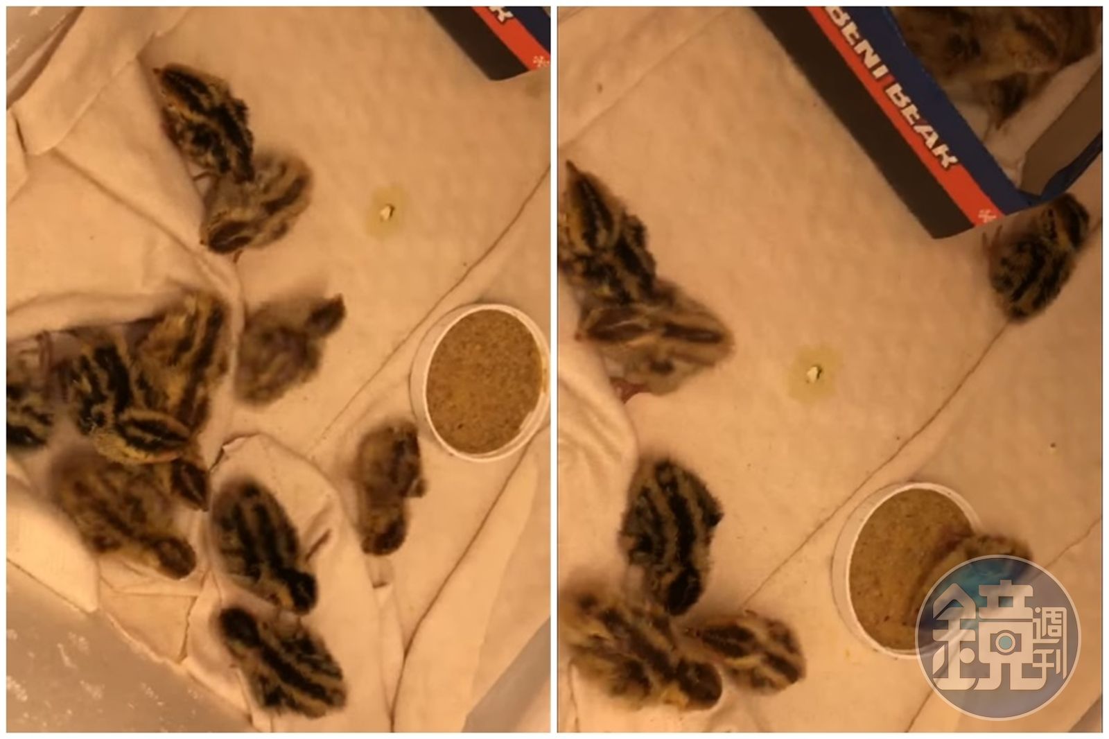 雲林有網友買了一盒鵪鶉蛋回家,結果竟孵化出十幾隻鵪鶉寶寶。(翻攝自西螺囝仔(Xiluo)臉書社團)待煮鵪鶉蛋放太久,孵出一窩小鵪鶉,讓民眾趕緊拿保麗龍盒鋪上毛巾,悉心照顧,並說「目前出生第三天將牠們安置在保麗龍箱鋪著布,買了飼料加一些水,(牠們)也都有吃。」但仍有兩隻小鵪鶉腳站不直沒什麼活力。讓她忍不住發問「請問該怎麼辦?」倒是網友的反應熱烈,詢問要如何認養,還有人說「養起來,他(牠)會再下蛋還您。」