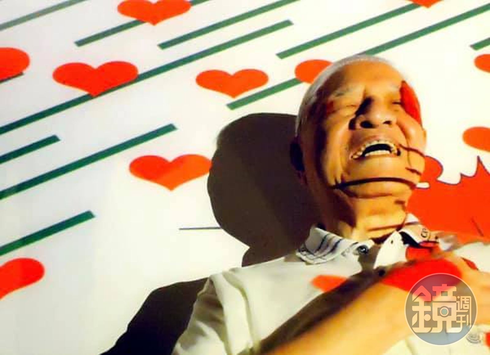 李登輝擔任藝術模特兒,在鏡頭前擺出各式各樣不同的姿勢,顛覆以往的形象。(翻攝自臉書「可愛又迷人的反派角色」,攝影師:佐藤公紀)李登輝擔任藝術模特兒,在鏡頭前擺出各式各樣不同的姿勢,顛覆以往的形象。(翻攝自臉書「可愛又迷人的反派角色」,攝影師:佐藤公紀)該參展作品是由日本的攝影師佐藤公紀,利用投影機將特定繪圖投影在牆上為基礎,再請李總統當前景,擺出各種姿勢形成有趣的畫面。只見照片中,李前總統像個大孩子一樣,在鏡頭前露出燦爛的笑容,搭配上造型可愛、色彩繽紛的繪圖投影,成了一幅幅相當有特色的作品。