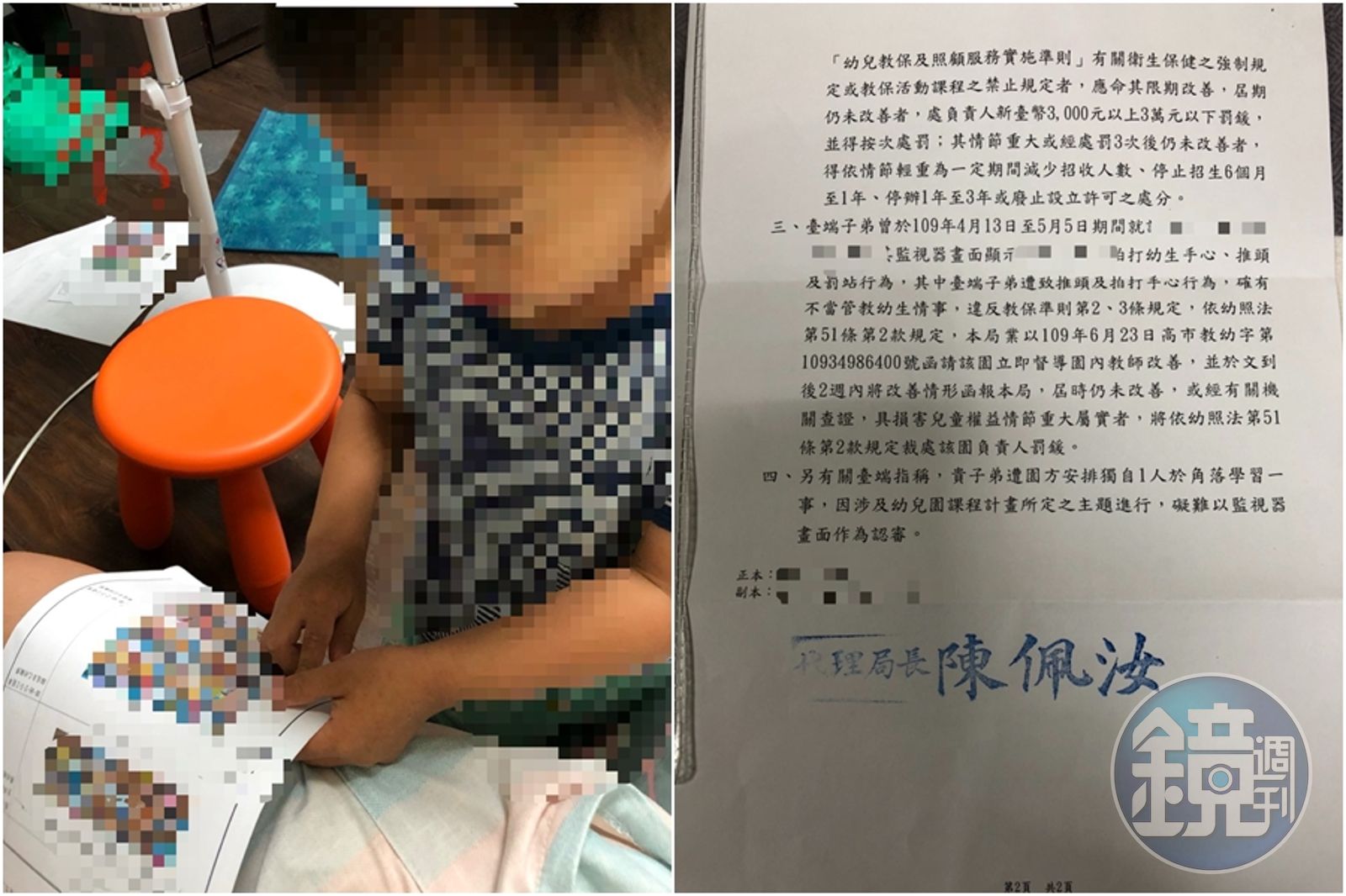至於受害學童被安排獨自一人於角落學習一事,教育局則回應「因涉及幼兒園課程計畫所定之主題進行,難以監視器畫面作為認審。」對此,家長提出反駁,先前她曾在監視畫面中看到,該名老師將兒子叫到跟前拍攝學習照片後,不到三分鐘,又讓兒子回到座位上獨坐,根本沒有所謂的課程安排,認為教育局說法令人難以信服。