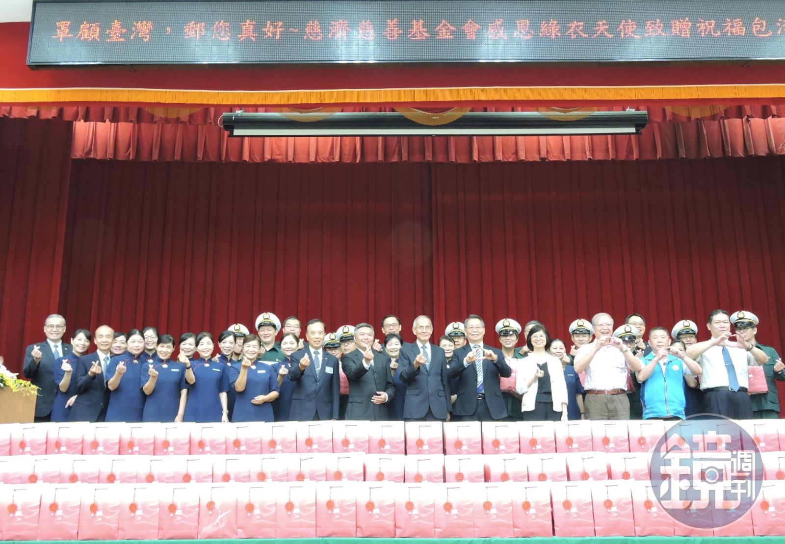 代表慈濟出席的慈濟志工、同時也是交通部前部長蔡堆表示,這群郵務士每天奔波在外、用餐不定,慈濟致贈的祝福包,特別用心挑選適合快速用餐的健康營養食品,內有「福慧珍粥」「香積麵」「小葉紅茶」「海苔餅乾」及「杏仁一口餅」等,讓郵務士們補足元氣,再出發。