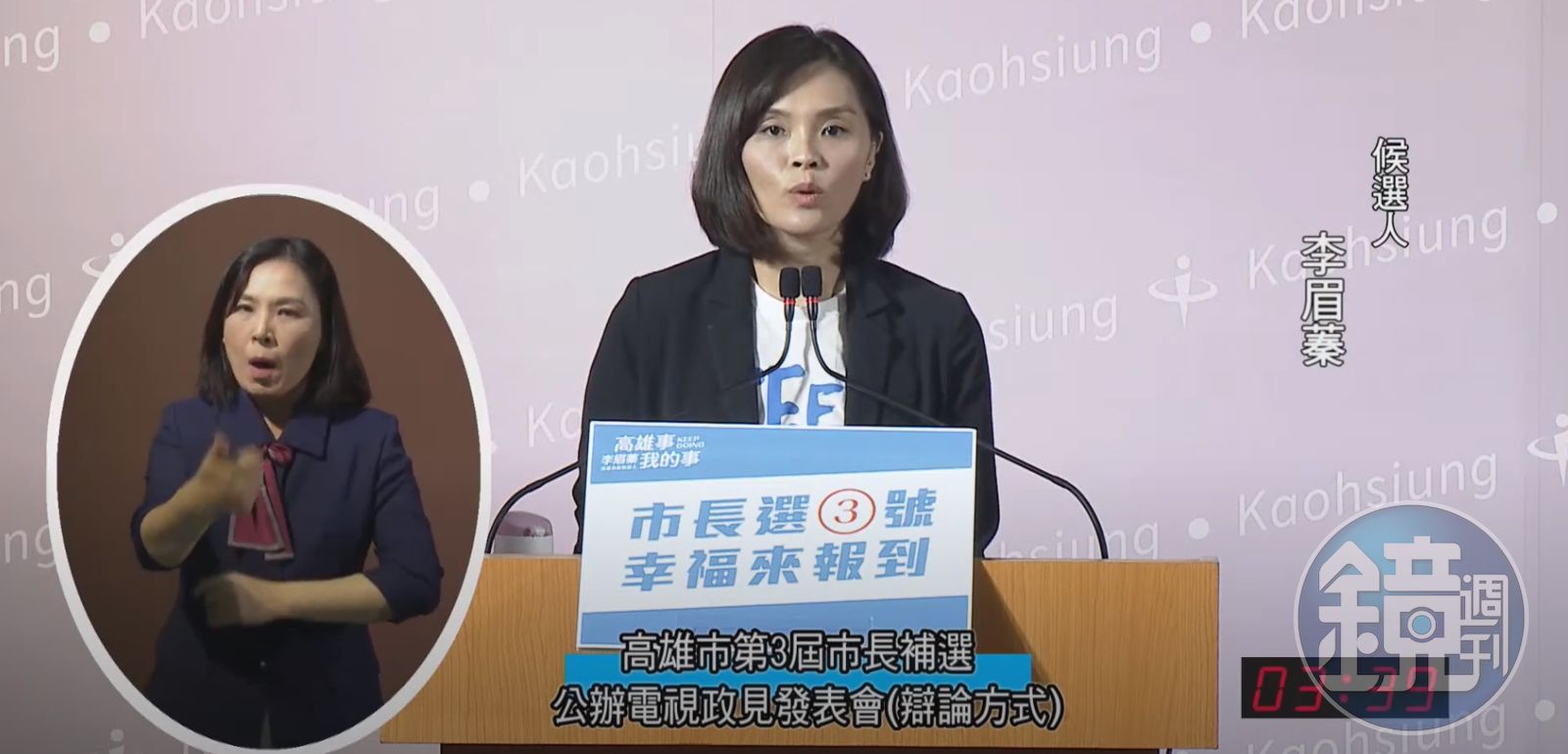 最後,李眉蓁還提出口號表示,「市長選3號,幸福來報到。」更提出創造高雄三贏的想法,若她當選市長後,將會邀請吳益政當副市長,「至於陳其邁先生,我相信蔡總統會有更好的安排,這樣我們3個人都可以為高雄打拚。」