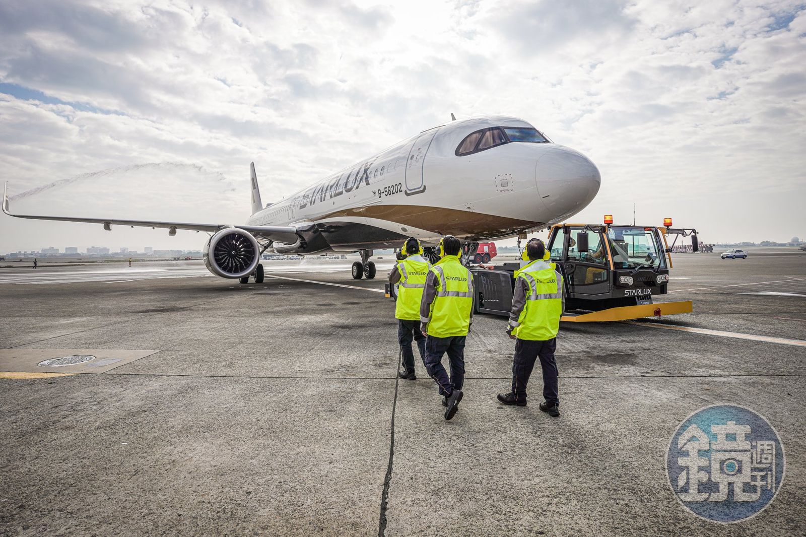 值得一提的是,星宇刻意選在較遠的機坪登機,讓旅客有機會搭乘接駁車Link Monster前往機坪,沿途展示多種勤務車隊,更安排專業的地勤員工駐點,講解每台車的性能與工作任務,並邀請消費者拍照及提問。