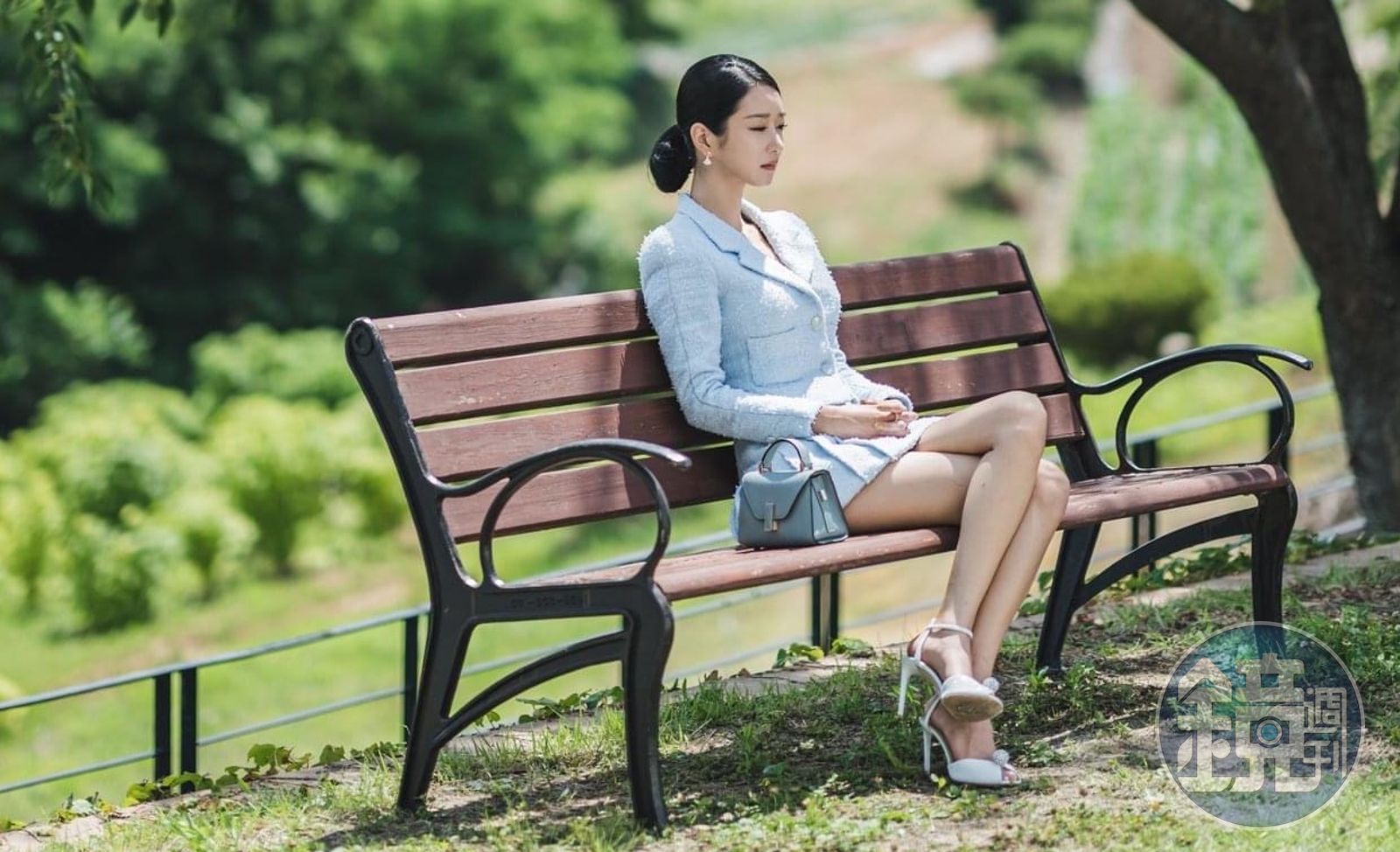 徐睿知一身淡藍色裙裝搭配同色系Iside手袋,優雅浪漫。(翻攝自tvN DRAMA)發布時間:2020.08.07 08:26 臺北時間