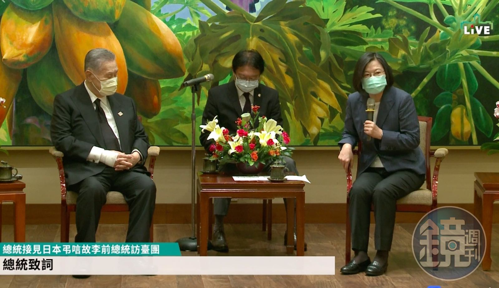 除此以外,總統蔡英文近日登上日本漫畫雜誌封面引起熱議,森喜朗也親自買書帶來送給蔡英文,森喜朗開心表示「這是我人生第一次買漫畫雜誌」,他解釋,在搭新幹線的時候看到這本雜誌封面是蔡英文總統,所以就買下來當做伴手禮物。