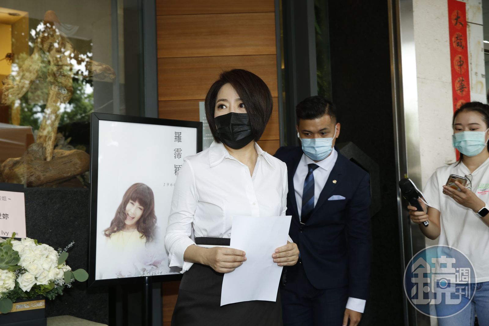 今日靈堂上,許久不見的ㄚ子,牽著5歲的兒子出現,8年前她捲入Makiyo醉毆司機案,已經退出演藝圈5年,和老公定居嘉義,但跟羅霈穎仍有互動,並感謝當年羅霈穎對她的稱讚,「謝謝羅姐在我還沒嫁人的時候,就說我以後一定是好媳婦,你們可以去看《康熙》那一集,好媳婦我是第1名!謝謝羅姐。」