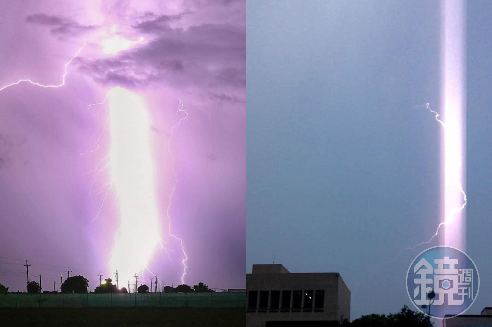 照片中一道巨型閃電劃破天際,天空瞬間轉變成神祕的紫色;就連氣象專家彭啟明博士都在臉書轉PO文章,寫下「我觀詳許久,想是否是曝光太多與否?但還是很誇張,好像雷神索爾下凡人間。」