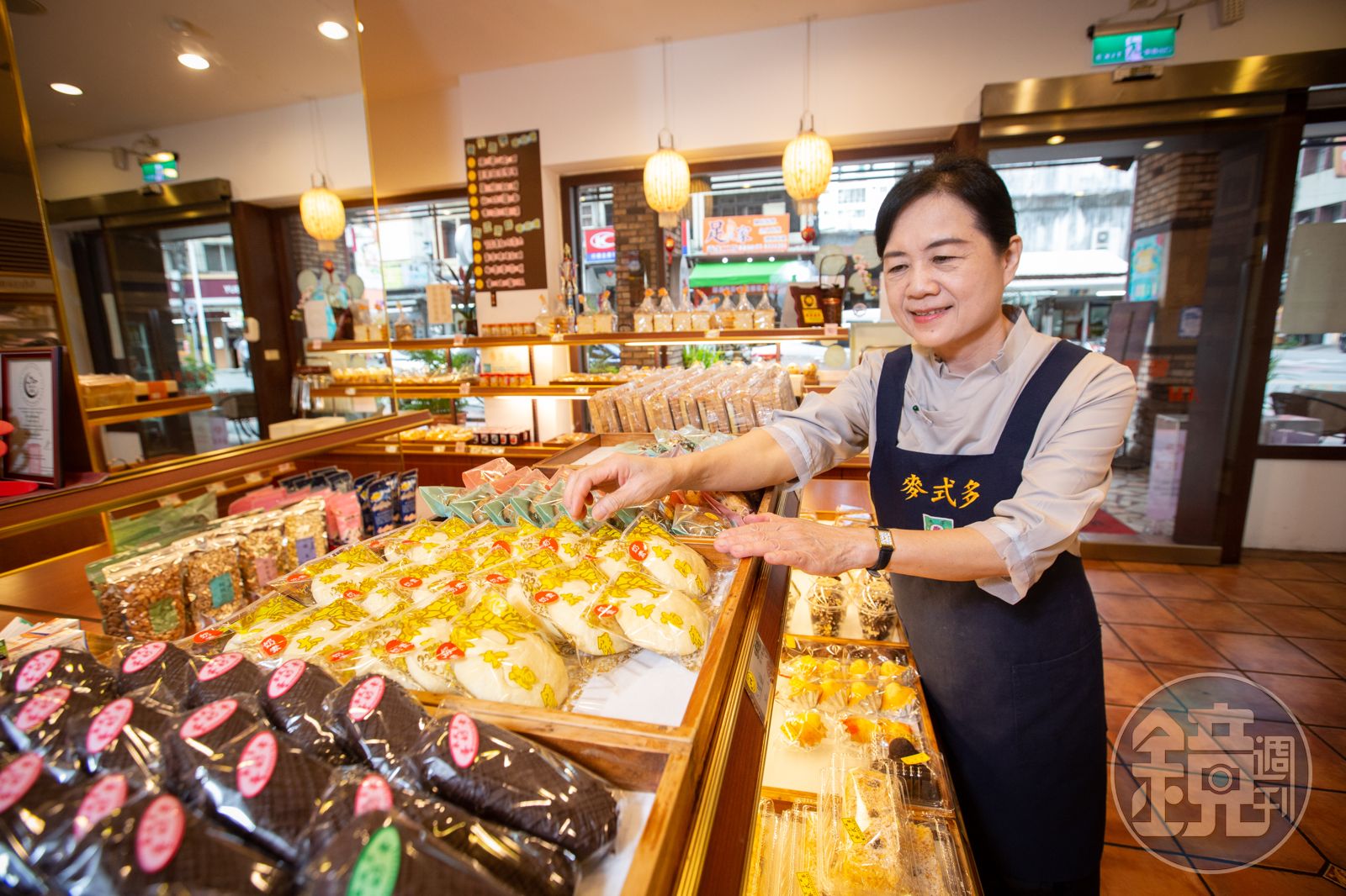 為了喚起老顧客的記憶,林素珍靈機一動,拉著先生去拍照,將2人的合照做成DM小卡,貼在彌月禮盒樣品上,「我不能明說自己才是新綠洲的創辦人,但大家看到我們的照片,就會想起熟面孔,1年後生意就很穩定。」反觀三哥因本身不會技術,隨著師傅流動、生意每況愈下,3年後就收攤。