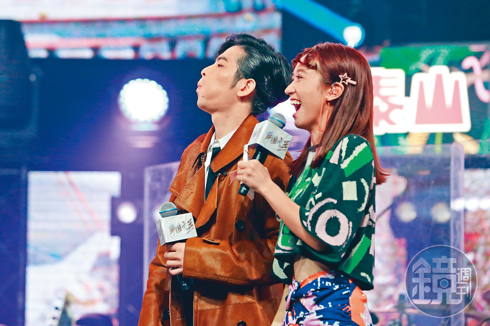 Lulu(右)因為能主持又能唱,被製作人詹仁雄欽點成為《聲林之王》主持人。左為蕭敬騰。發布時間:2020.08.26 05:58 臺北時間