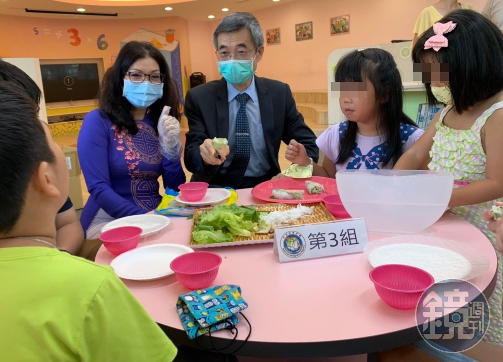 梁副署長一行人專程到武氏芳恆女士任教的八里國小,嘉許她不向命運低頭的精神及助人為樂的善行。現場新二代以唱越語歌謠方式,歡迎梁副署長的蒞臨,並由芳恆帶大家一起體驗越式春捲DIY。