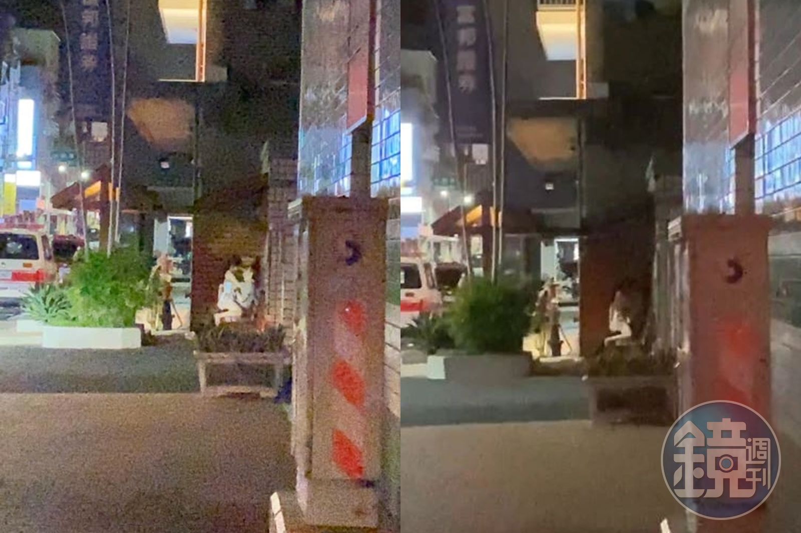 從影片中可以看見,七夕情人節當晚,一對男女坐在椅子上,呈現女上男下面對面交疊坐姿,無視他人觀感,忘情的抽動著;最令人訝異的是,地點就在新竹市政府對面,一旁還是新竹市警察局。