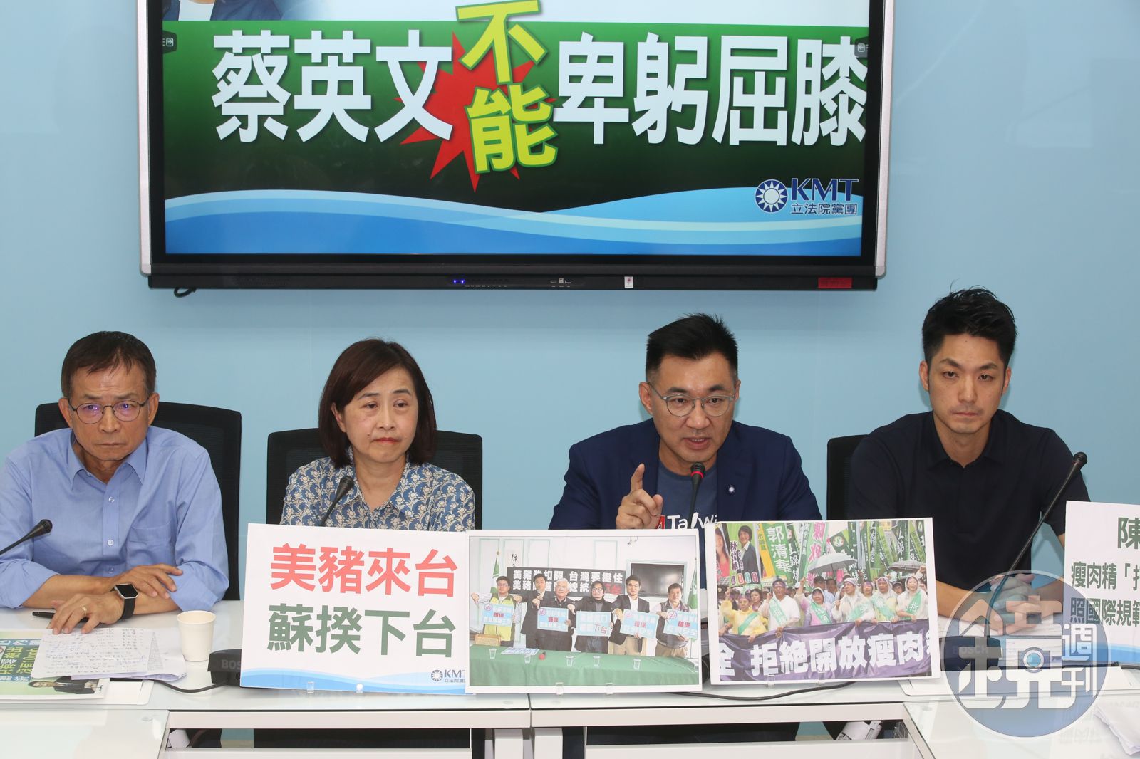 「在野時候講一套,執政講另一套!」江啟臣與黨團書記長林奕華、立委蔣萬安、賴士葆召共同開記者會,他痛批,民進黨過去在野時,經常說要跟人民站在一起顧食安、顧健康,但現在「換位子就換了腦袋」,執政後完全棄人民於不顧。
