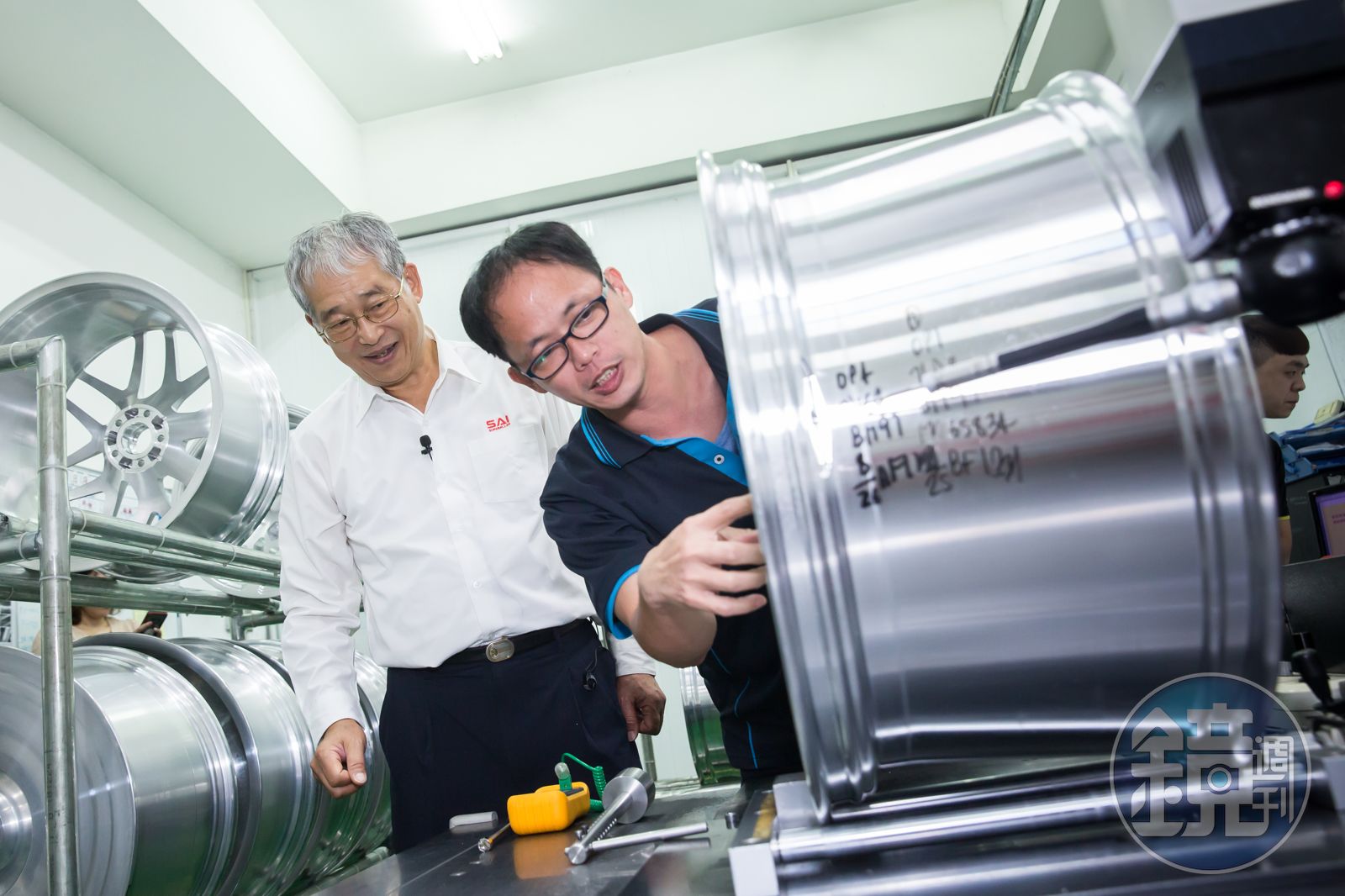 黃聰榮說,自己就是在2000年進入巧新,掌管財務、管理、資材和製造等部門,「雖然我不是公司創始股東,但早年為了維持公司運作,也自掏腰包投了不少錢,到現在對公司有很深的情感。」只見他一邊拿起公司第一個誕生的輪圈、一邊說明,「像這個輪圈就我們花了很多精力,最後終於拿到美國通用汽車的訂單。它是16吋、僅8公斤的輕卡輪圈,以重量來說,在業界是很大的突破。」