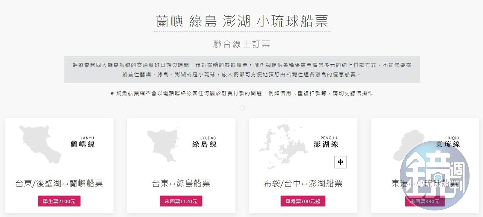 對於客戶使用網購平台遭詐騙,「飛魚船票網」澄清,近日因電腦系統遭駭導致旅客資料外流的為蘭嶼航線的「綠島之星」客輪船公司(龍鴻航業股份有限公司),並非該網站。