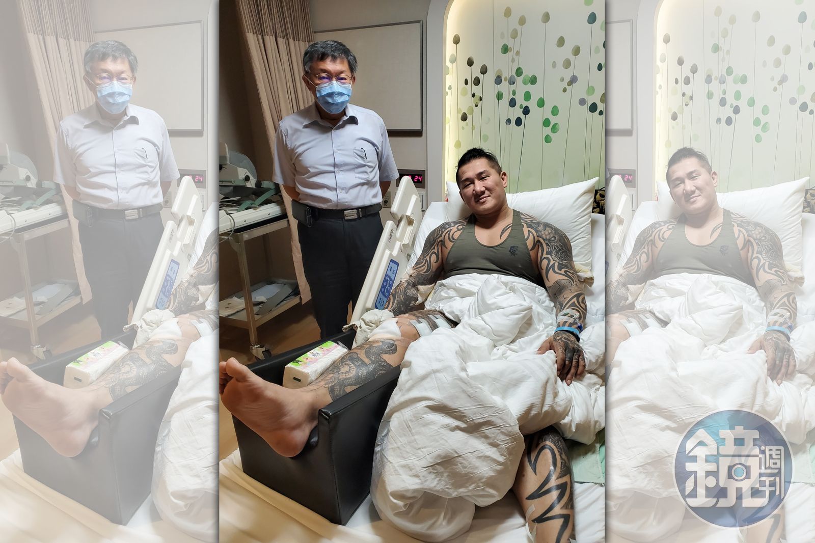 外科醫生出身的柯文哲昨晚探視館長,並與主治醫師討論館長的病情。(翻攝自飆捍臉書)館長貼出柯文哲前往探視的照片,照片中的柯文哲仔細觀察傷勢,網友搞笑幫配旁白,「這個齁!我想是這樣啦!(抓頭)這3公分的部位齁,要把它留下來啦!」,另張照片柯文哲比出手勢,網友發揮想像力寫道「柯市長:不如趁這次手術……幫他接這麼長好了」,還有網友點名「如果韓先生(韓國瑜)去看你我就佩服他了」,引發熱烈討論。