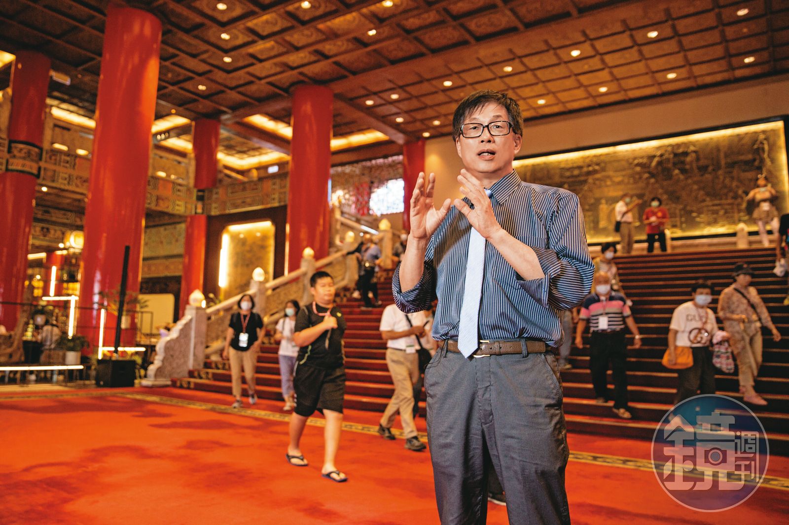 8月中旬,一個平日的午後,烈日當空,基隆河上波光粼粼,隔著300多公尺的圓山大飯店被照得金碧輝煌,大廳人聲鼎沸,滿是用餐人潮;圓山飯店董事長林育生在12樓的圓山行館接受本刊專訪,談起樓下的景況,他的兩眼笑成了一直線,直言圓山表現優於台北其他飯店,但隨即正色對著陪訪主管說:「今年以來還是虧錢,大家下半年要更努力。」