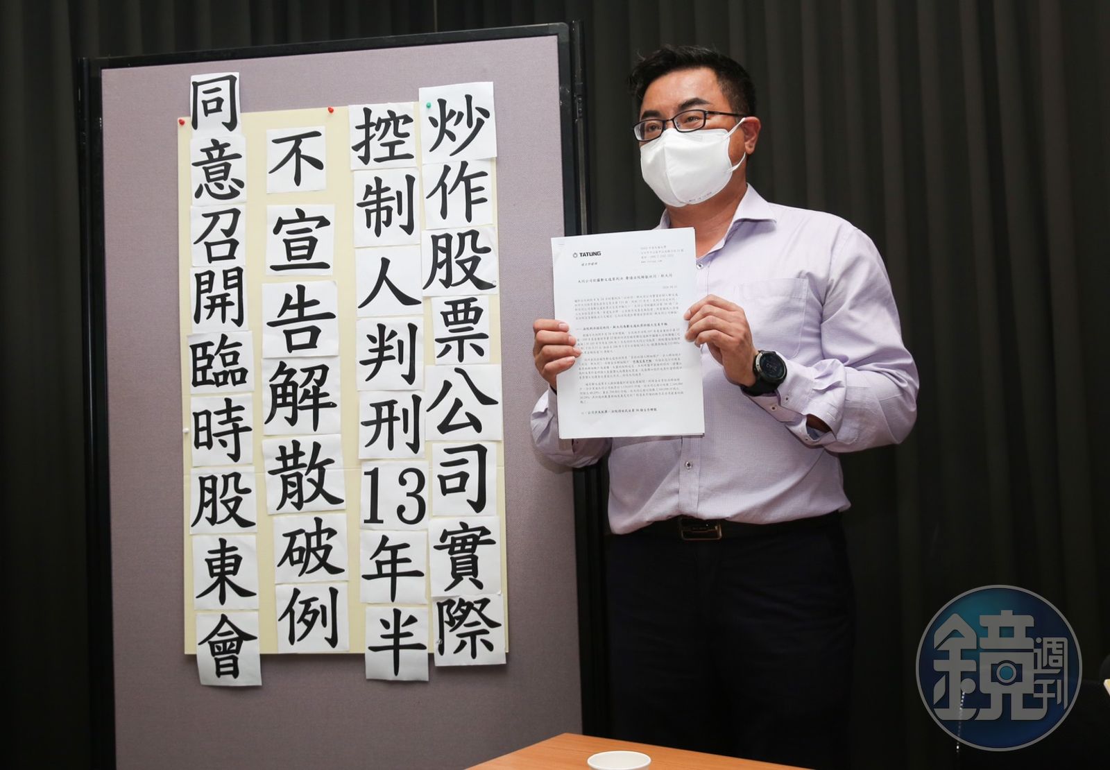 今日下午,大同公司派召開記者會,由法務長趙安、執行副總彭文傑出席,說明公司接下來重要法律行動,呼籲主管機關撤銷市場派召集臨股會之處分。