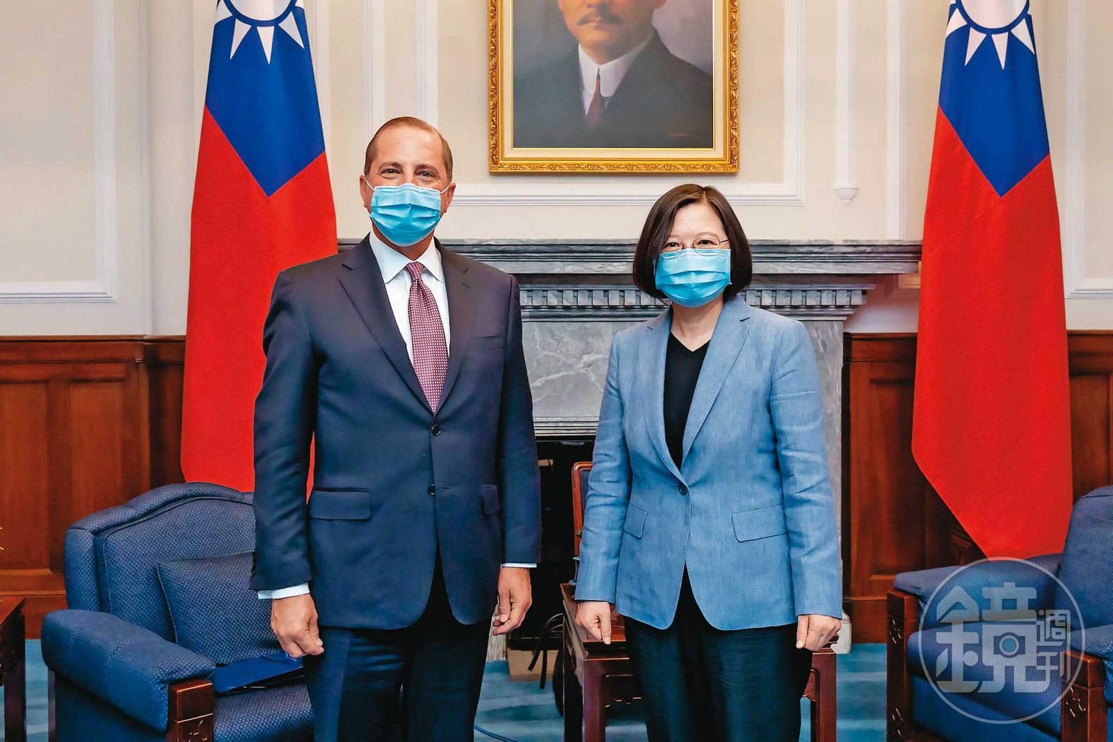 參與決策的幕僚形容,蔡總統做出決策後,便展現出談判專家的姿態,主導議題節奏鋪陳。從8月10日接見阿札爾訪團、12日應美國華府智庫「哈德遜研究所」邀請以視訊發表演說、18日在總統府接見台北市美國商會會長金奇偉、23日與美國在台協會(AIT)處長酈英傑一同出席823砲戰追思活動、25日出席台北市美國商會謝年飯活動,整個8月都密集釋出期盼台美夥伴關係能更進一步合作的訊息。