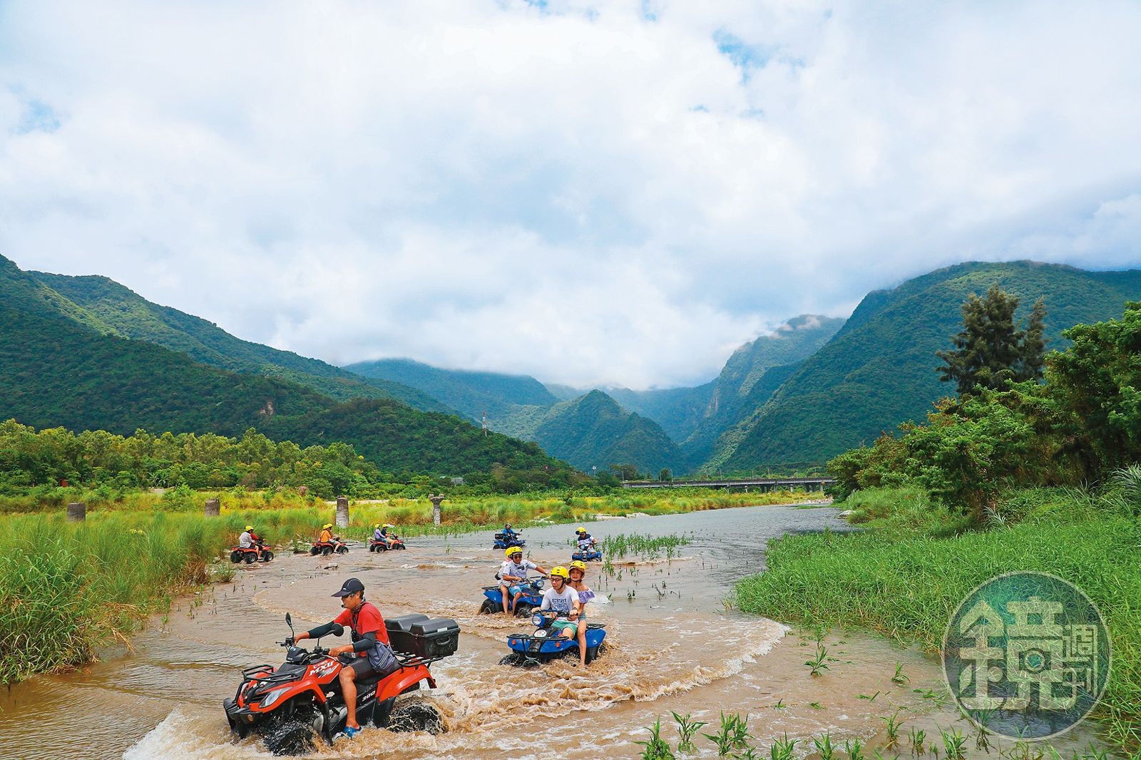 位在三棧溪出海口的地形豐富多變,有溪水、泥灘、草叢、樹林、海灘礫石等,為騎乘過程增加許多挑戰與樂趣。首先在礫石海灘上小試身手,雖然路面顛簸,但只要抓穩車子龍頭,沙灘車就能四平八穩。接著跟隨教練進入草叢路段,興奮於泥水濺起的刺激感,又擔心水太深會卡車,此時車子卻已輕巧而過。才剛出泥灘,又駛進溪水、爬上陡坡,不一會兒,領頭的沙灘車又繞著防風樹來個S型路線、奔馳飆沙,挑戰關卡一個接一個,可真是絕無冷場。