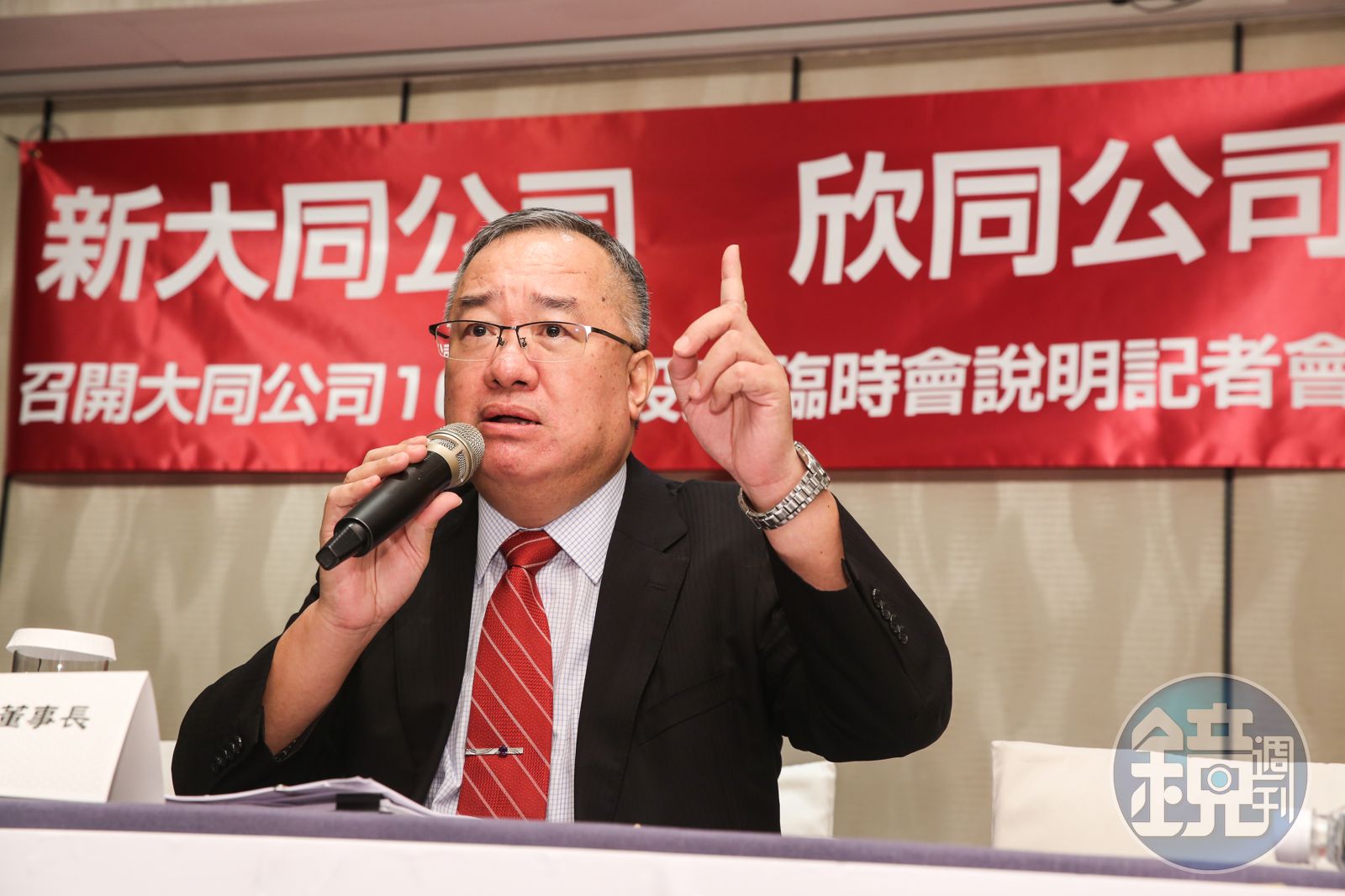 他認為,大同公司日前聲請解散欣同、新大同公司的法律動作,只不過是一種騷擾動作,「我相信法院不會受到混淆,對於沒有確定的事情,未來會如何認定,都還有待釐清,更何況,欣同、新大同公司當初購買大同股票,確實只為了爭取董事席次而已。」