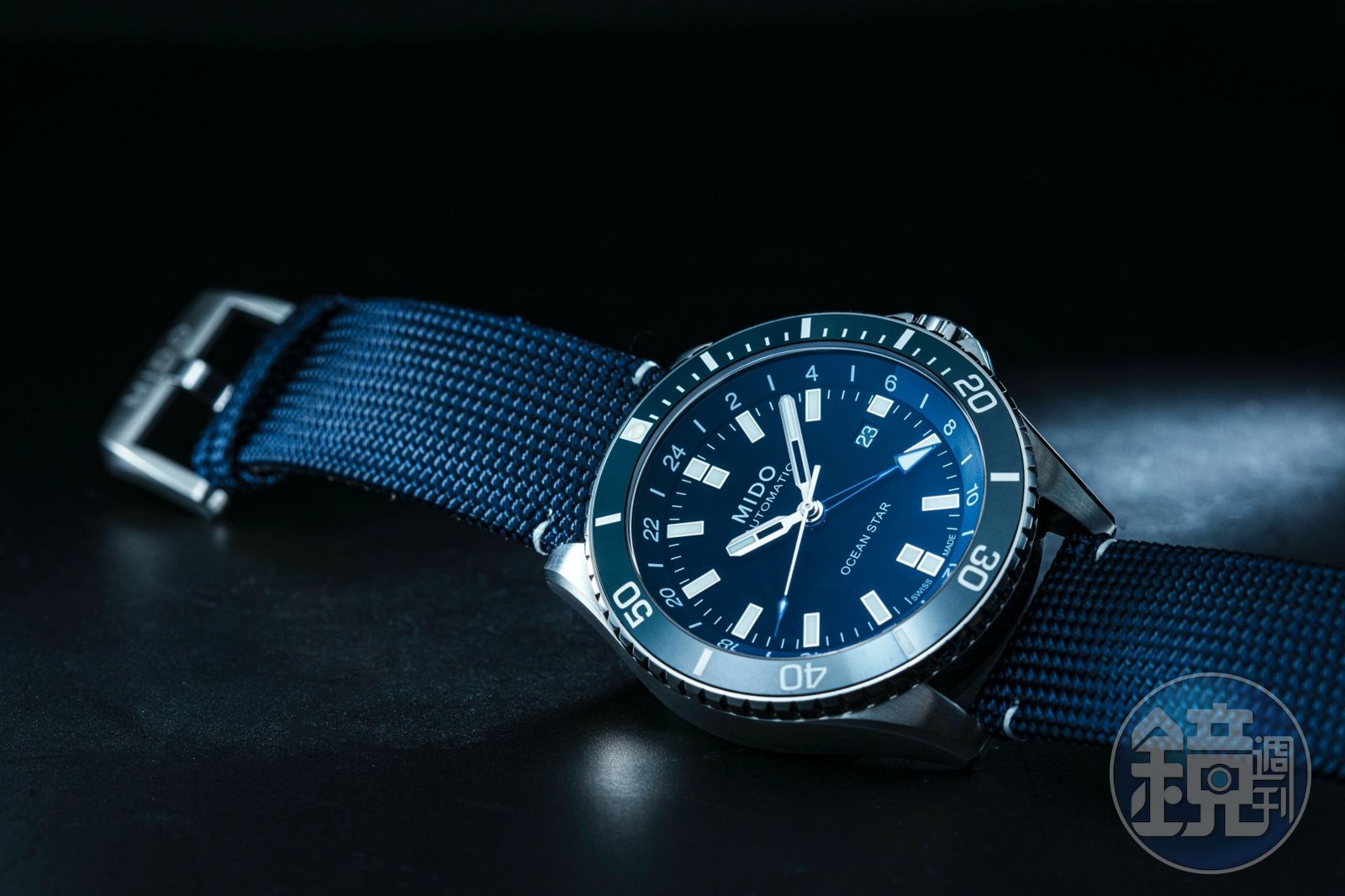 先來說明一下這款手錶的基本資料。MIDO今年發表的這款Ocean Star GMT,共有三個款式。分別是藍色陶瓷錶圈配上藍色織紋錶帶的皮帶款;黑色陶瓷錶圈配上精鋼錶帶的鍊帶款;以及黑色陶瓷錶圈配上玫瑰金PVD鍍層的雙色鍊帶款。